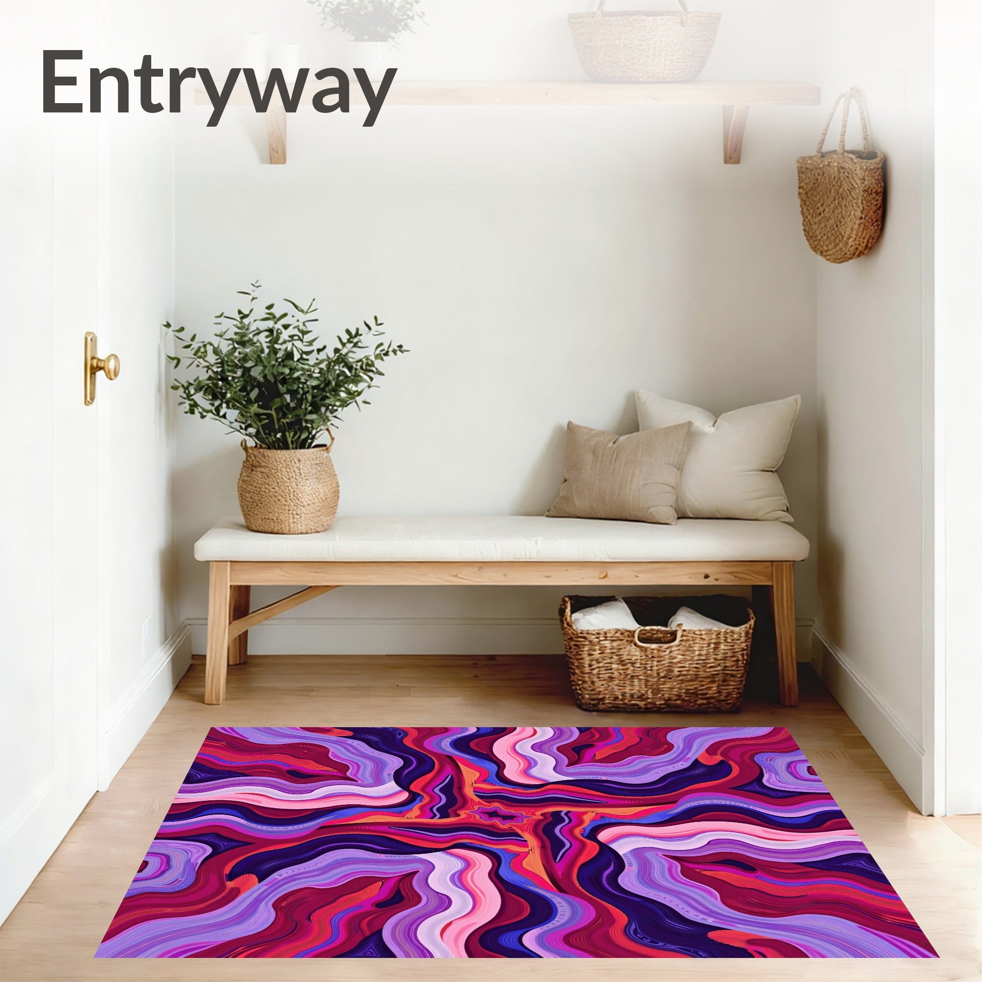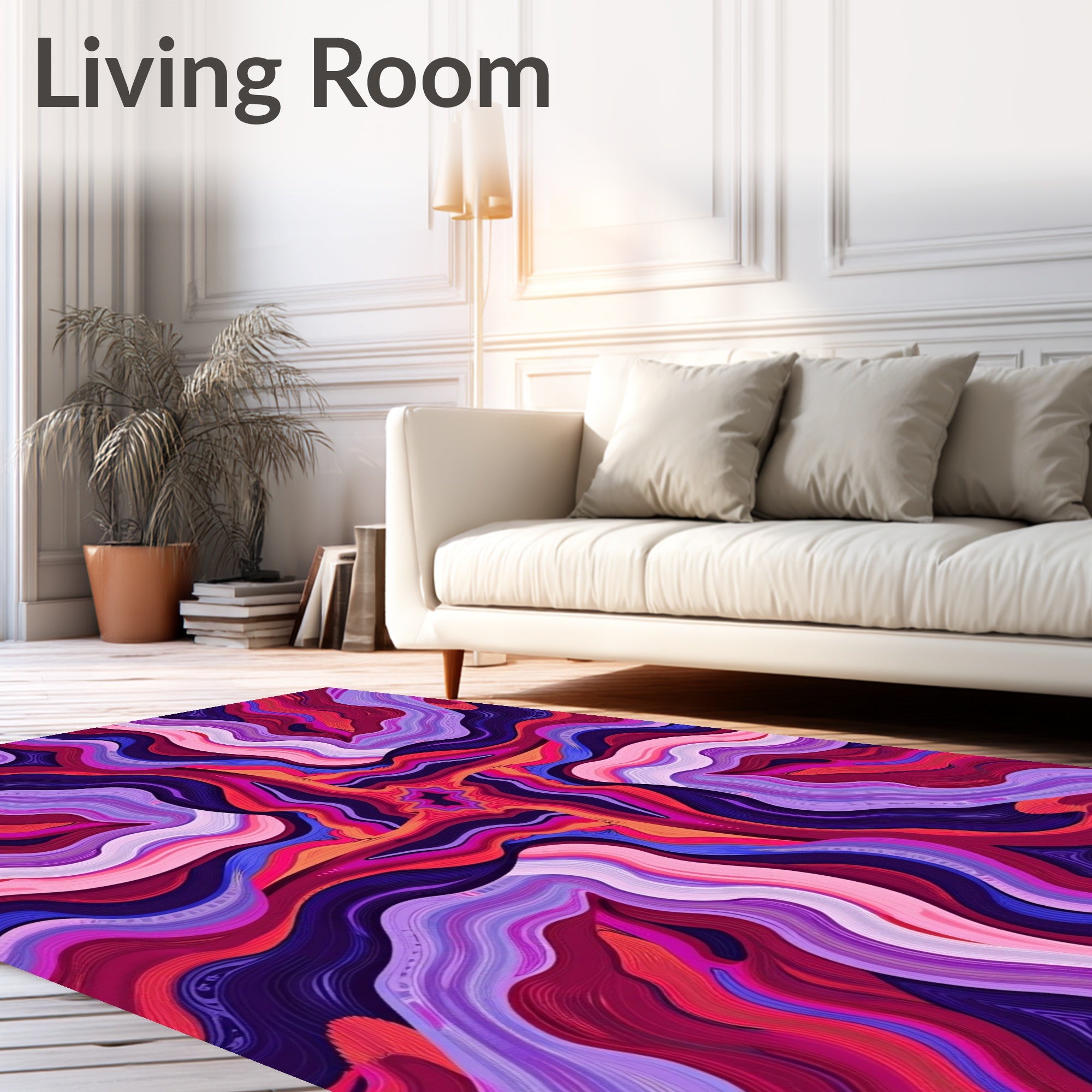 Ultra Soft Area Rug, Non Slip, Stain Resistant, Washable Area Rugs for Living Room, Bedroom, Abstract Watercolor Brushstroke with Flowing Paint Waves(Red) Overview: