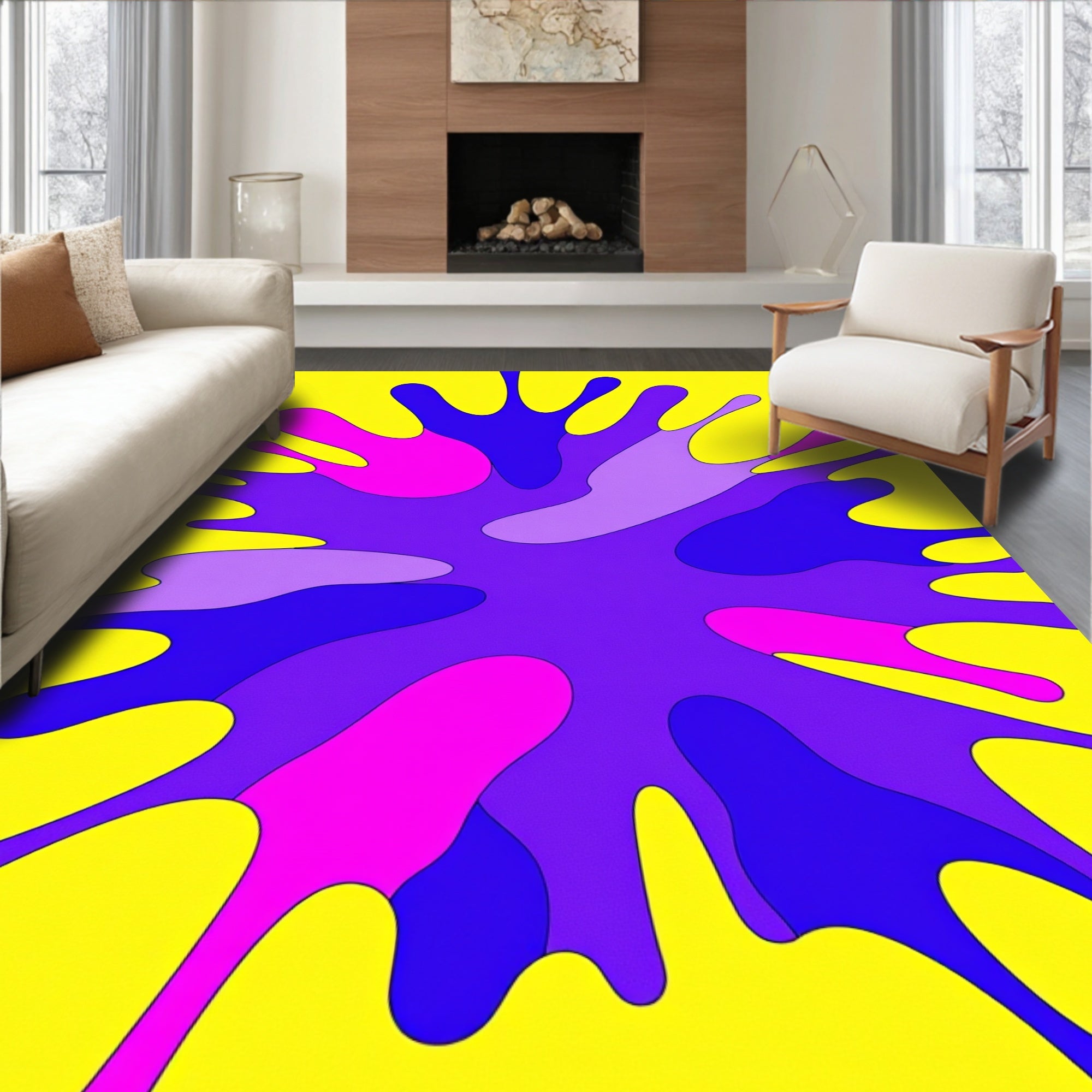 Ultra Soft Area Rug, Non Slip, Stain Resistant, Washable Area Rugs for Living Room, Bedroom, Abstract Watercolor Splash Contemporary Art(Yellow) Overview: