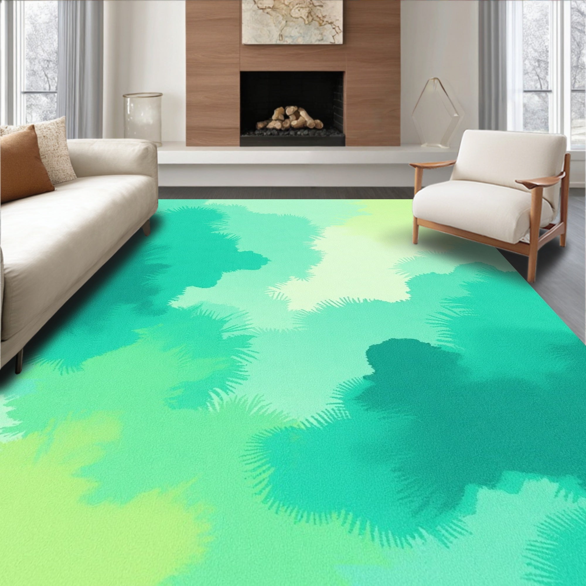 Ultra Soft Area Rug, Non Slip, Stain Resistant, Washable Area Rugs for Living Room, Bedroom, Abstract Watercolor Splash with Ombre Gradient Waves(Teal) Overview: