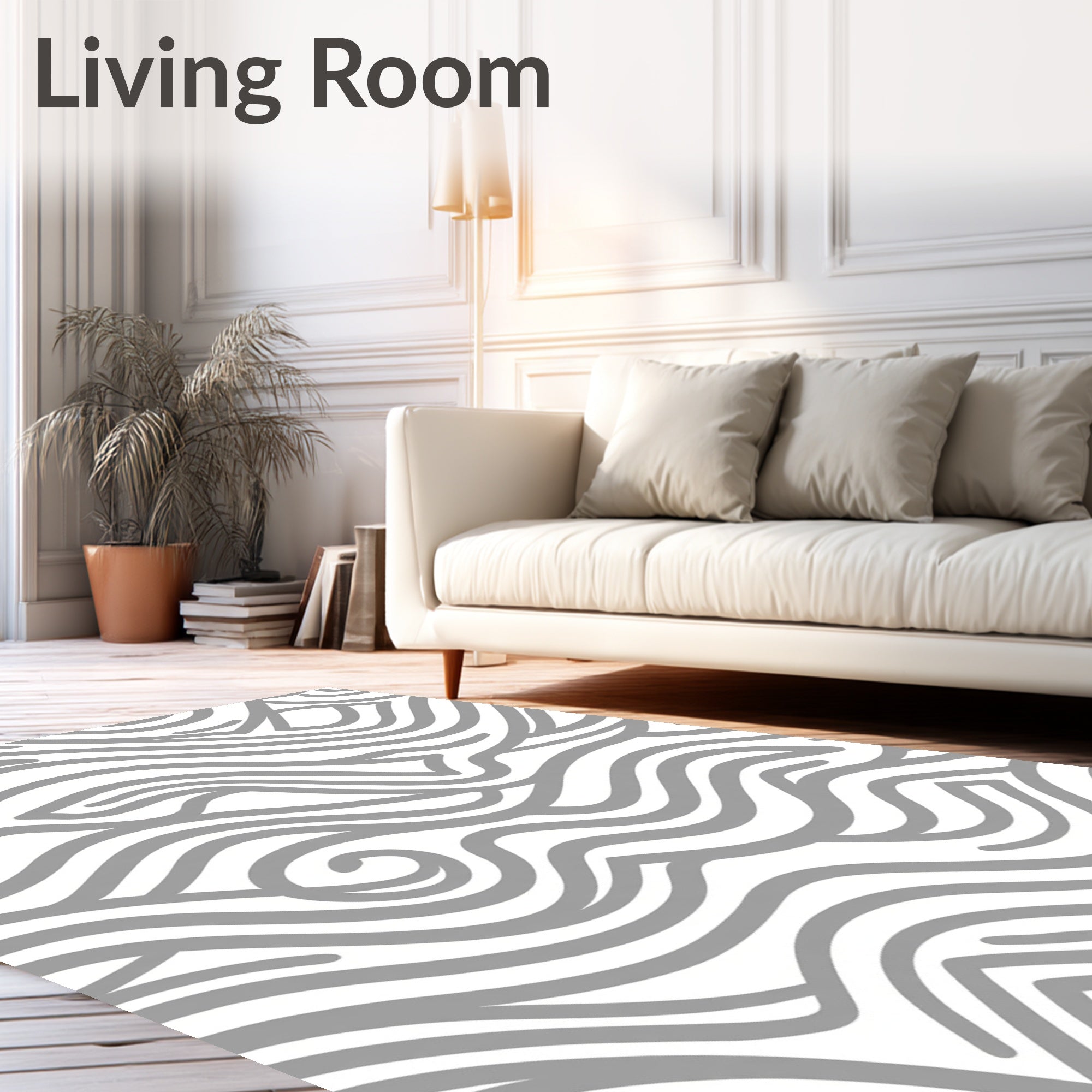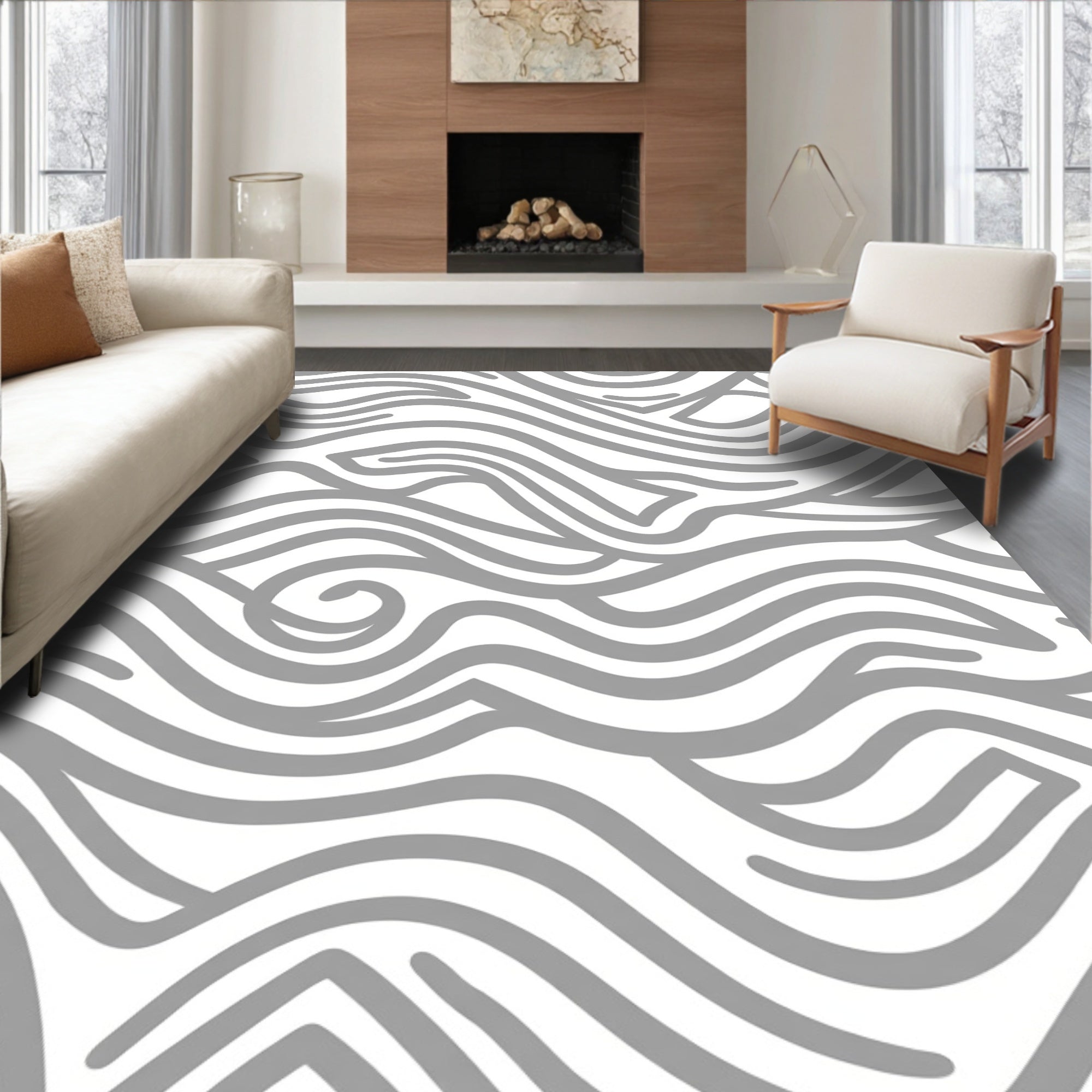 Ultra Soft Area Rug, Non Slip, Stain Resistant, Washable Area Rugs for Living Room, Bedroom, Abstract Wave Formation Featuring Fluid Curves and Monochrome Palette(Gray) Overview: