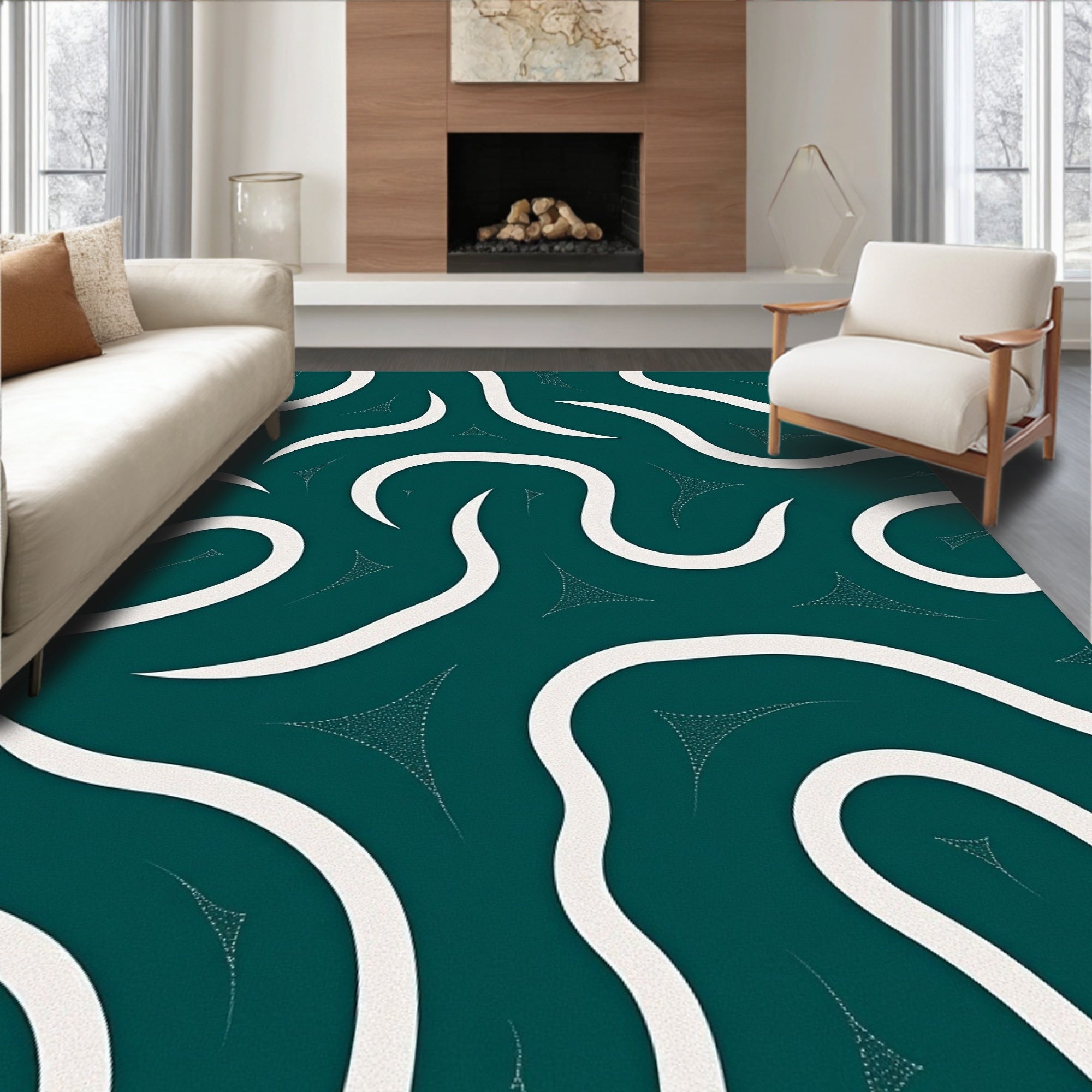 Ultra Soft Area Rug, Non Slip, Stain Resistant, Washable Area Rugs for Living Room, Bedroom, Abstract Wave Ripple Flow Dynamic Movement Contemporary Art Style(Green) Overview: