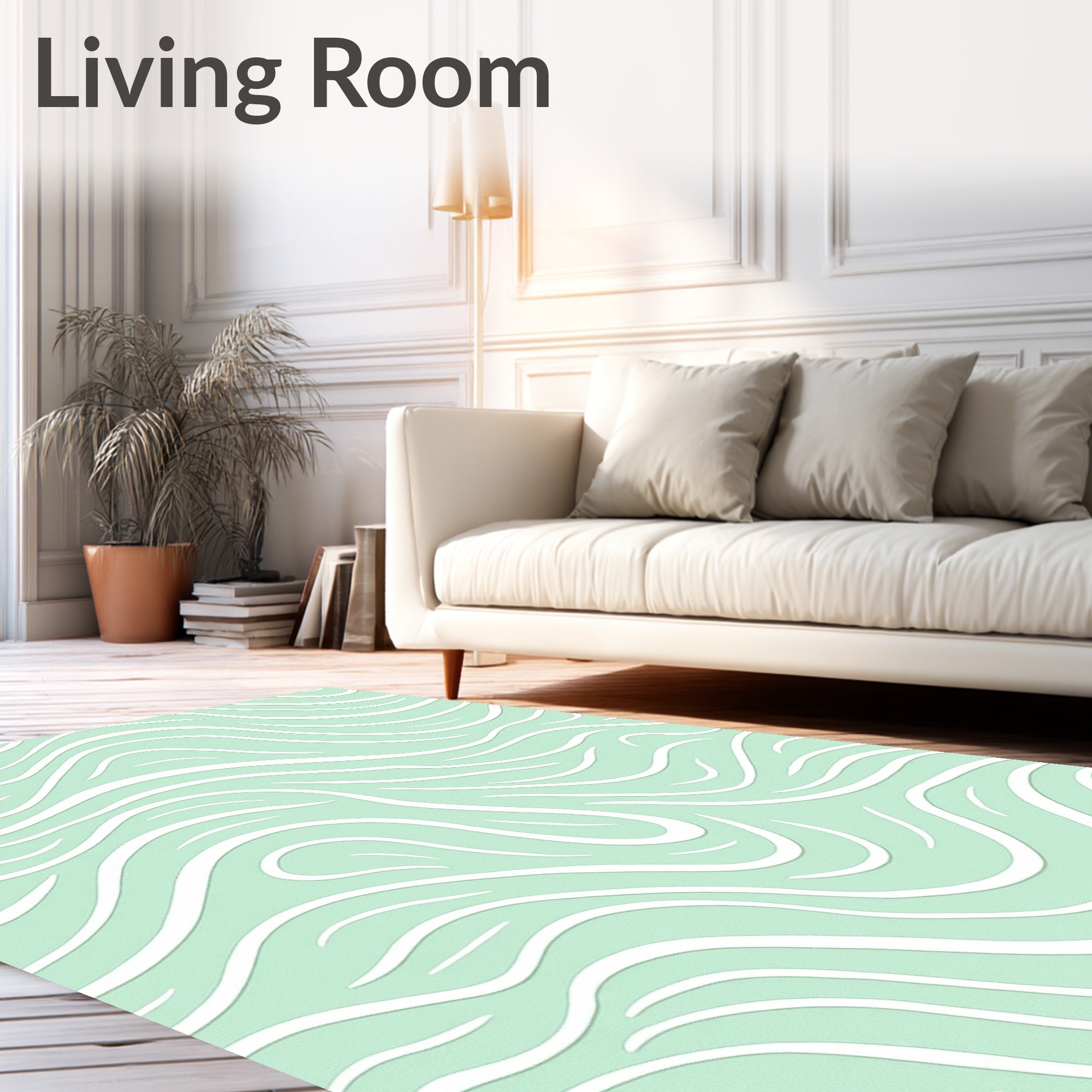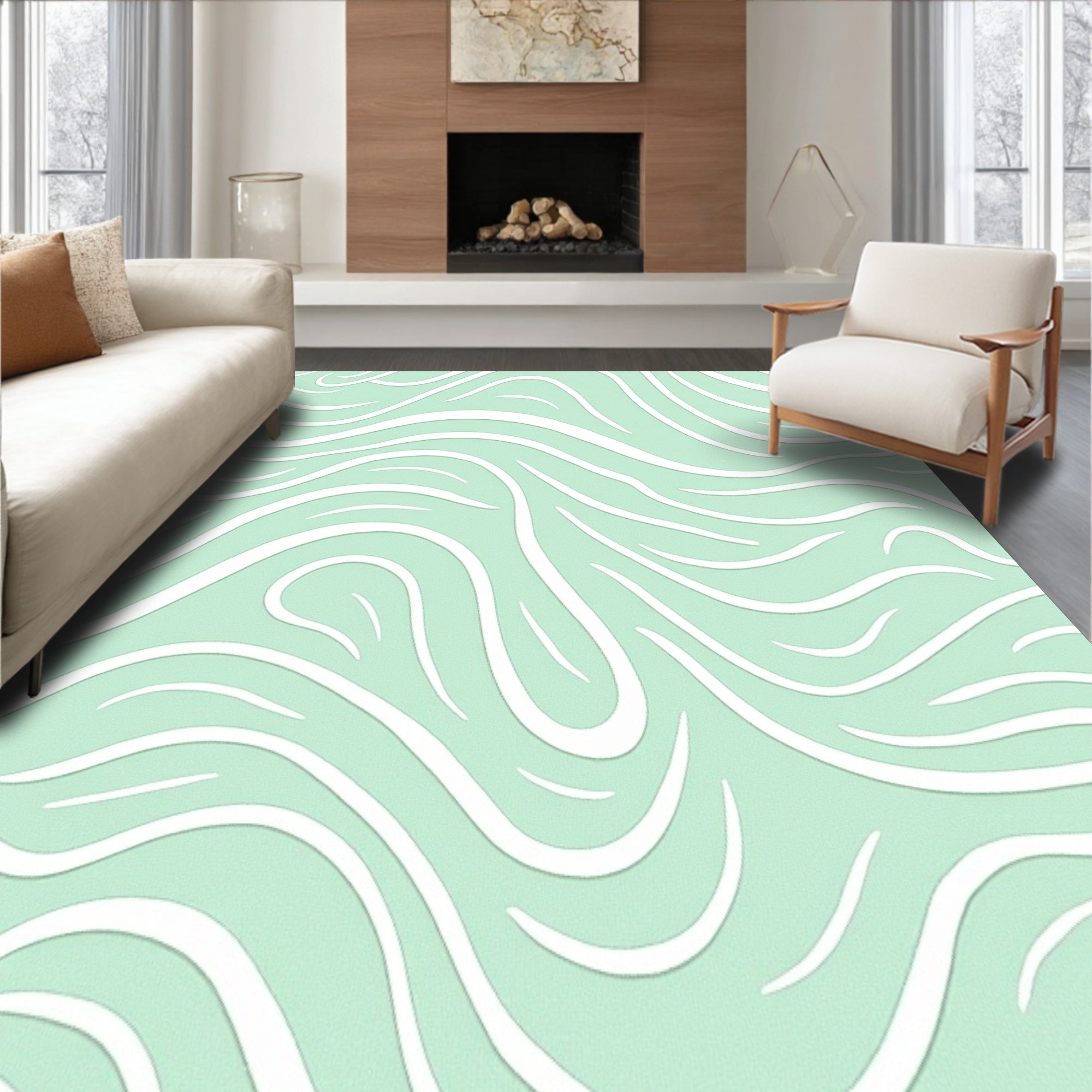 Ultra Soft Area Rug, Non Slip, Stain Resistant, Washable Area Rugs for Living Room, Bedroom, Abstract Wave Ripple with Art Nouveau Influence(Green) Overview: