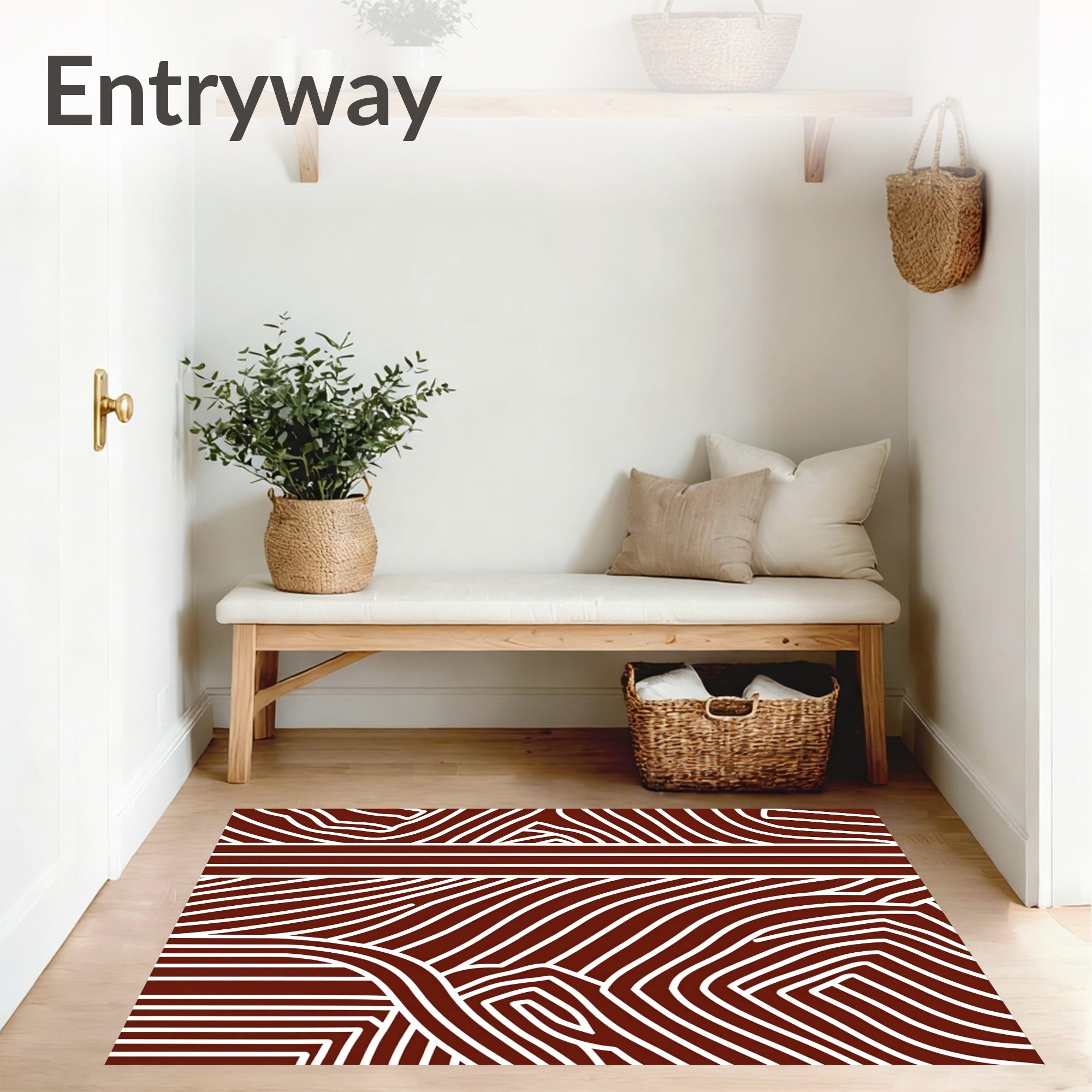 Flatwoven High Traffic Area Rug, Abstract Wave Stripe with Modern Minimalist Flow, Non Slip, Stain Resistant, Washable Area Rugs for Living Room, Bedroom (Brown) Overview: