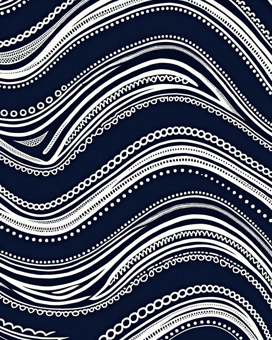 Abstract Waves and Dots with Interlocking Motifs(Blue)