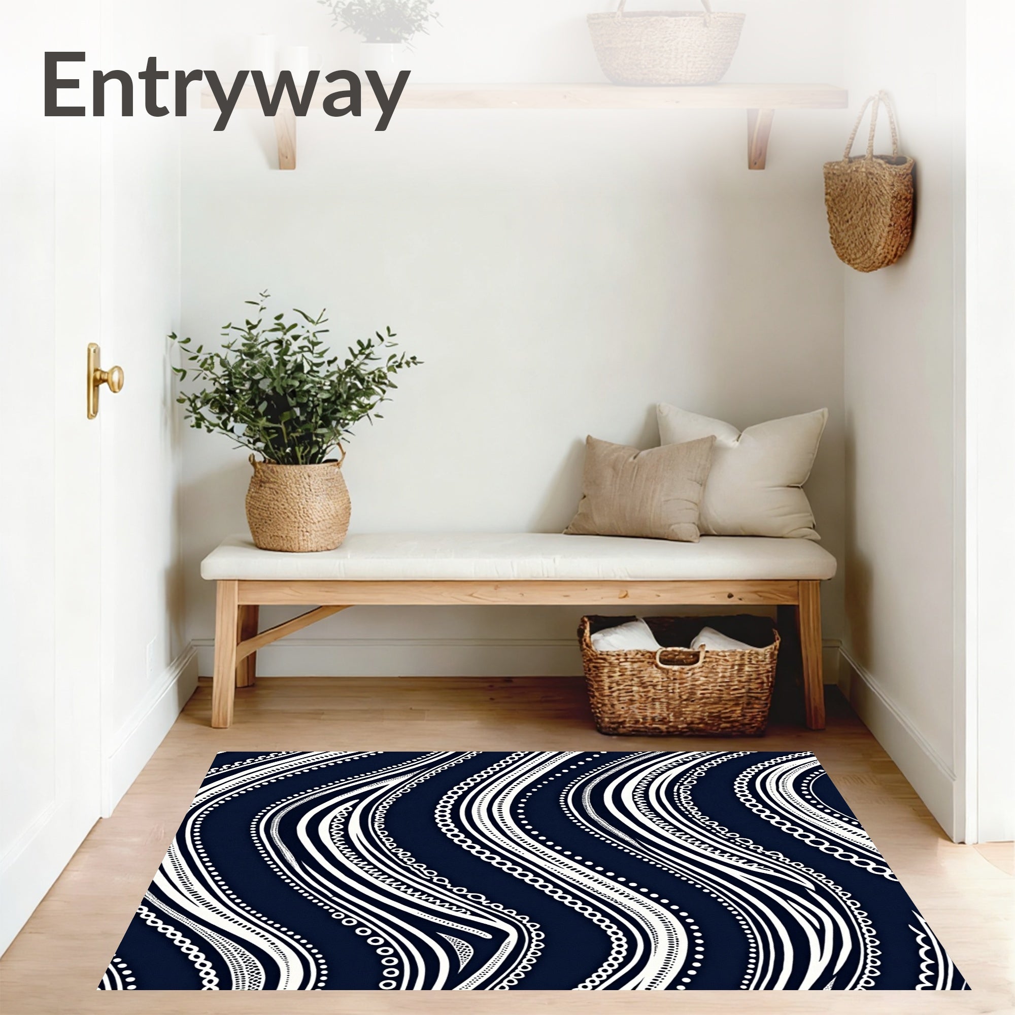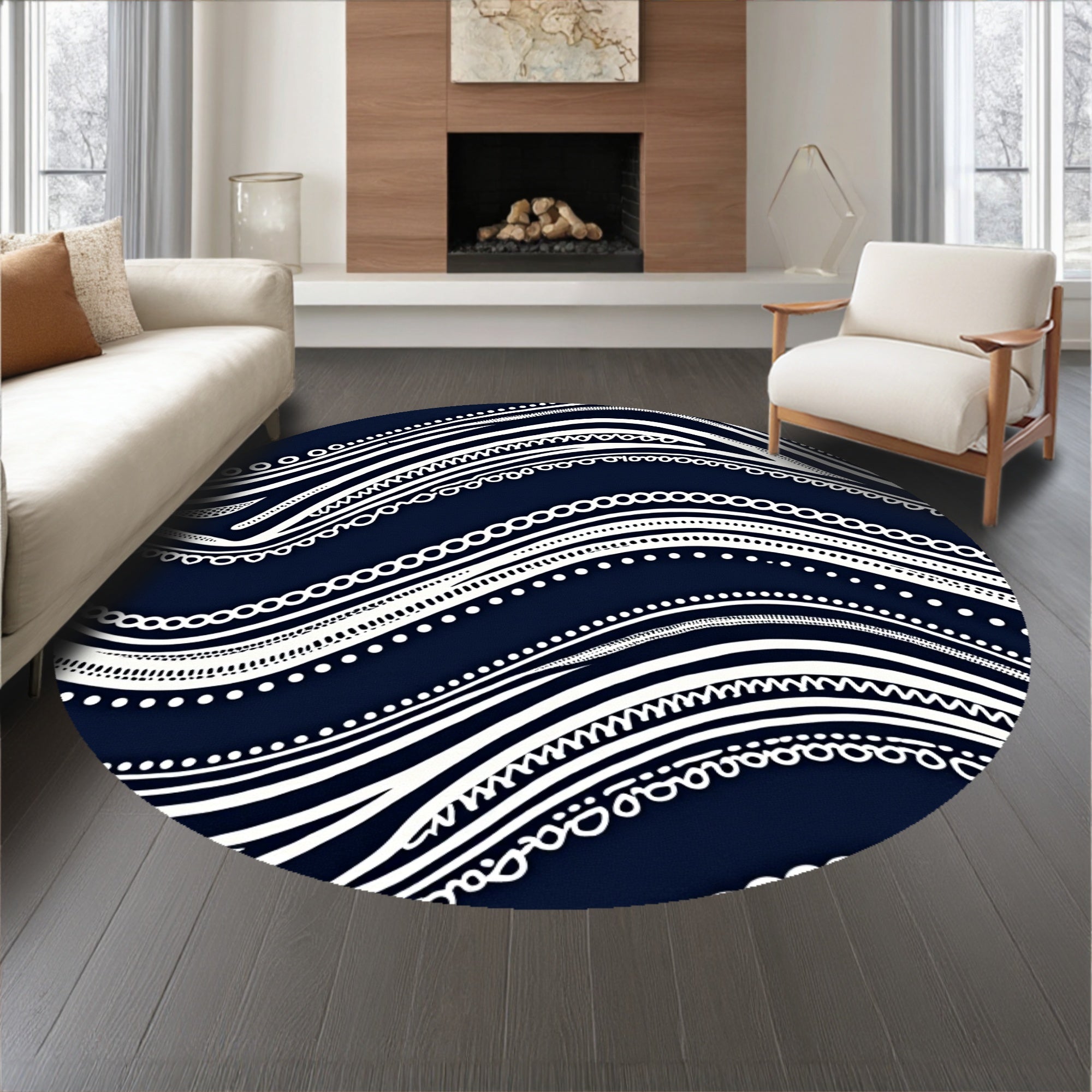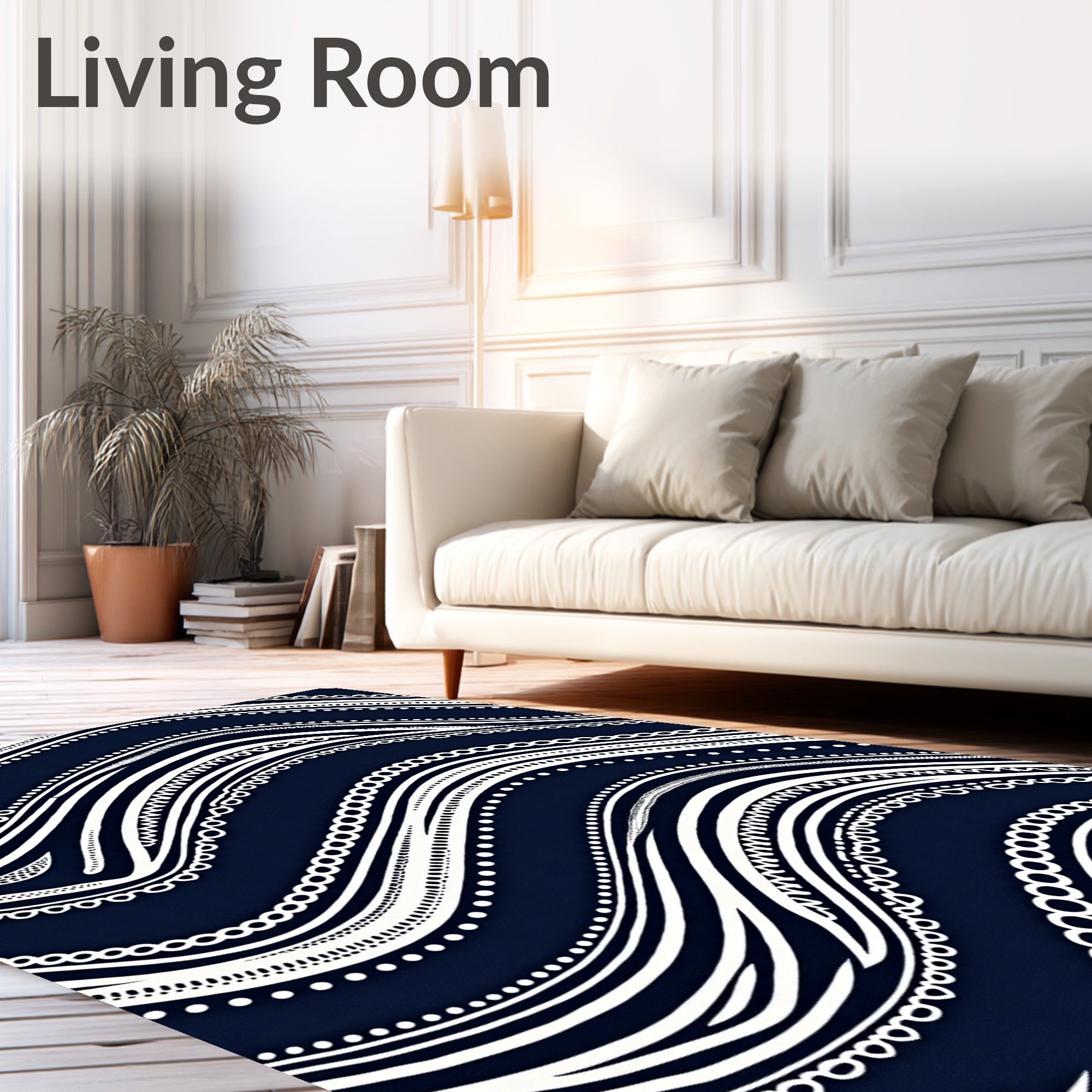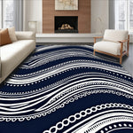 Ultra Soft Area Rug, Non Slip, Stain Resistant, Washable Area Rugs for Living Room, Bedroom, Abstract Waves and Dots with Interlocking Motifs(Blue) Overview: