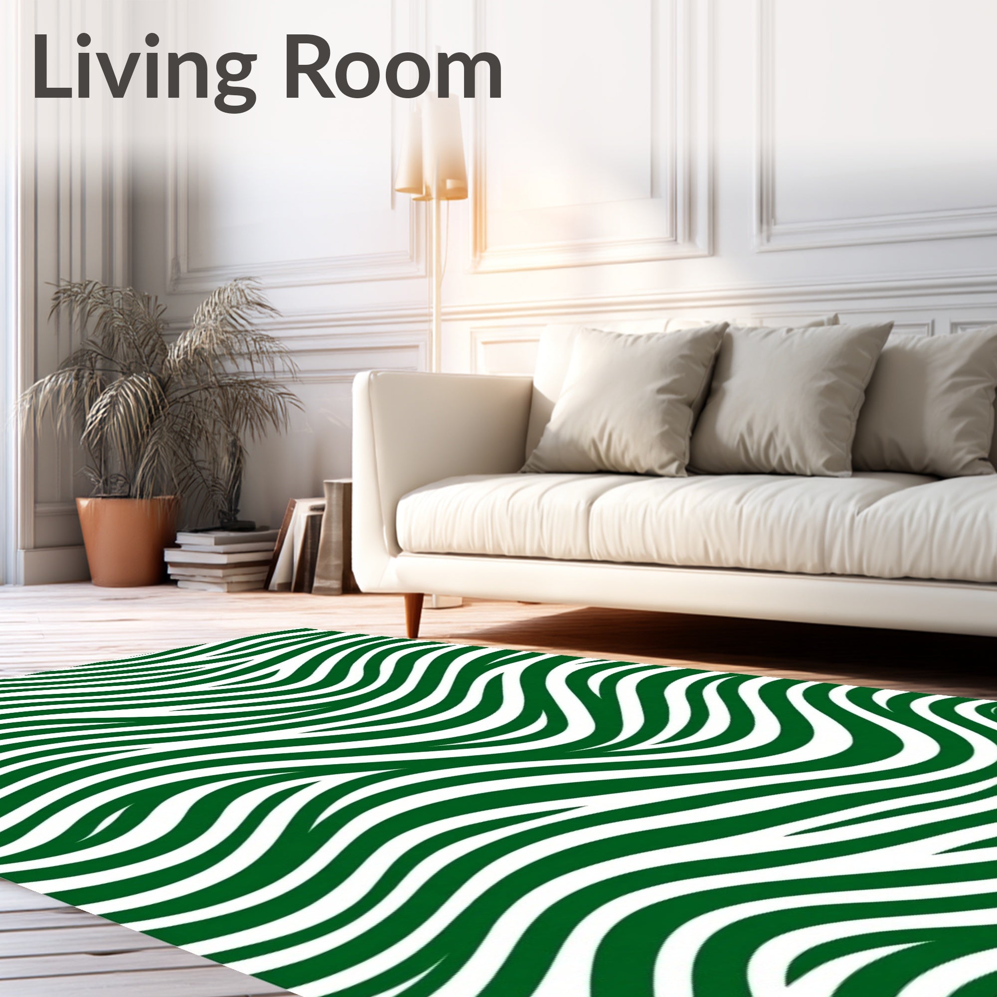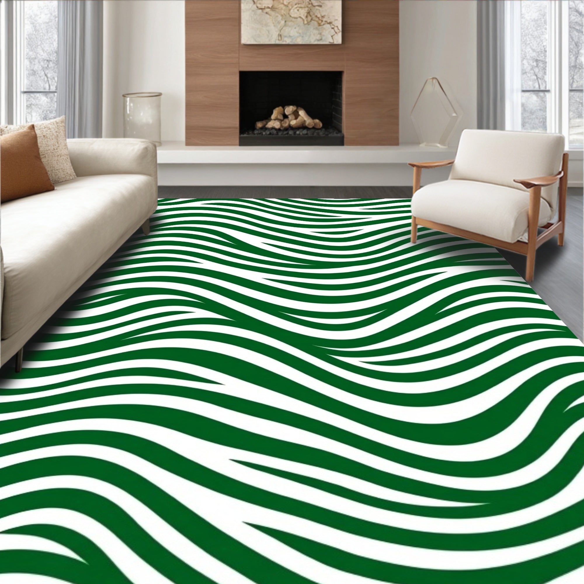 Ultra Soft Area Rug, Non Slip, Stain Resistant, Washable Area Rugs for Living Room, Bedroom, Abstract Waves with Serpentine Stripe Motif(Green) Overview: