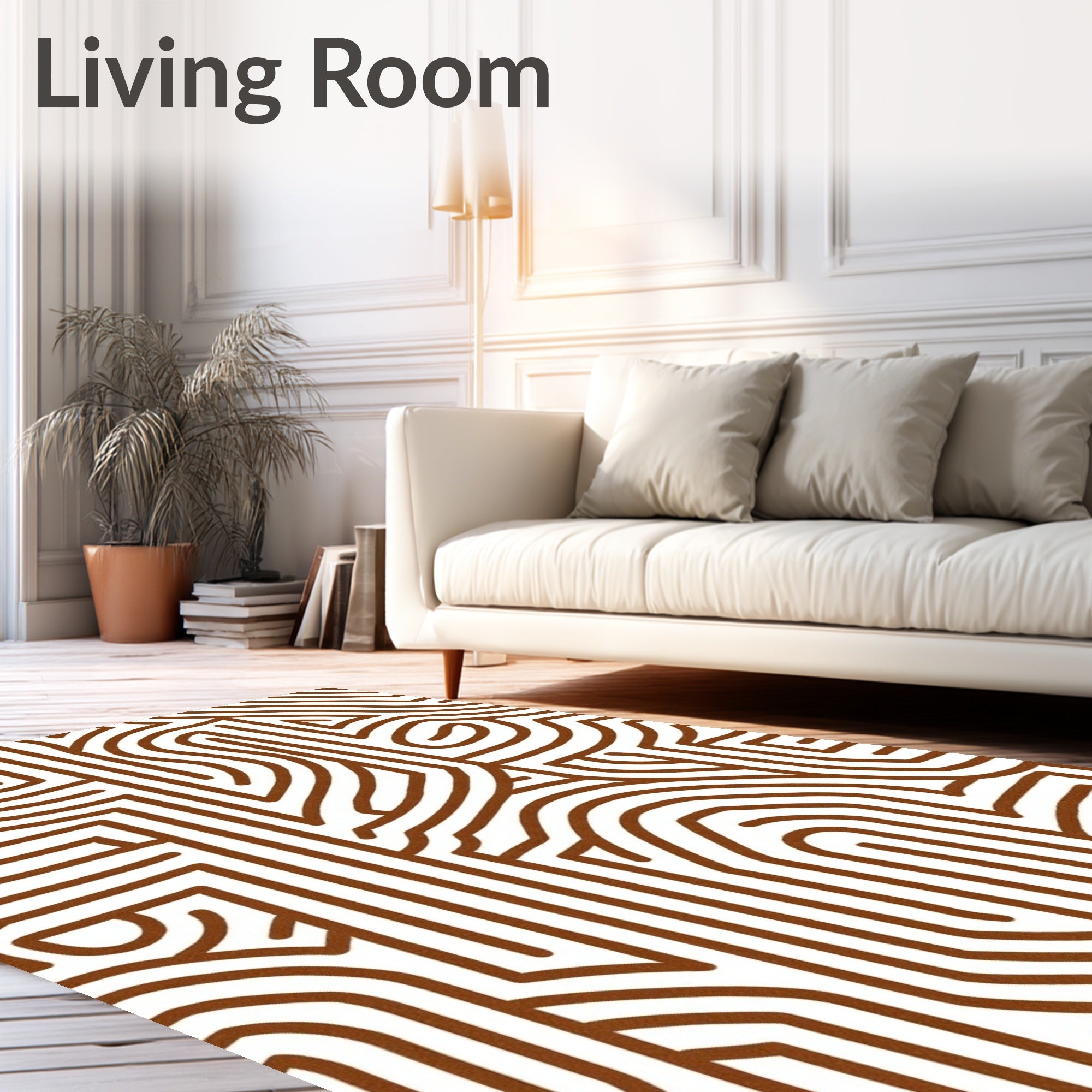 Ultra Soft Area Rug, Non Slip, Stain Resistant, Washable Area Rugs for Living Room, Bedroom, Abstract Wavy Striped Contour Maze(Brown) Overview: