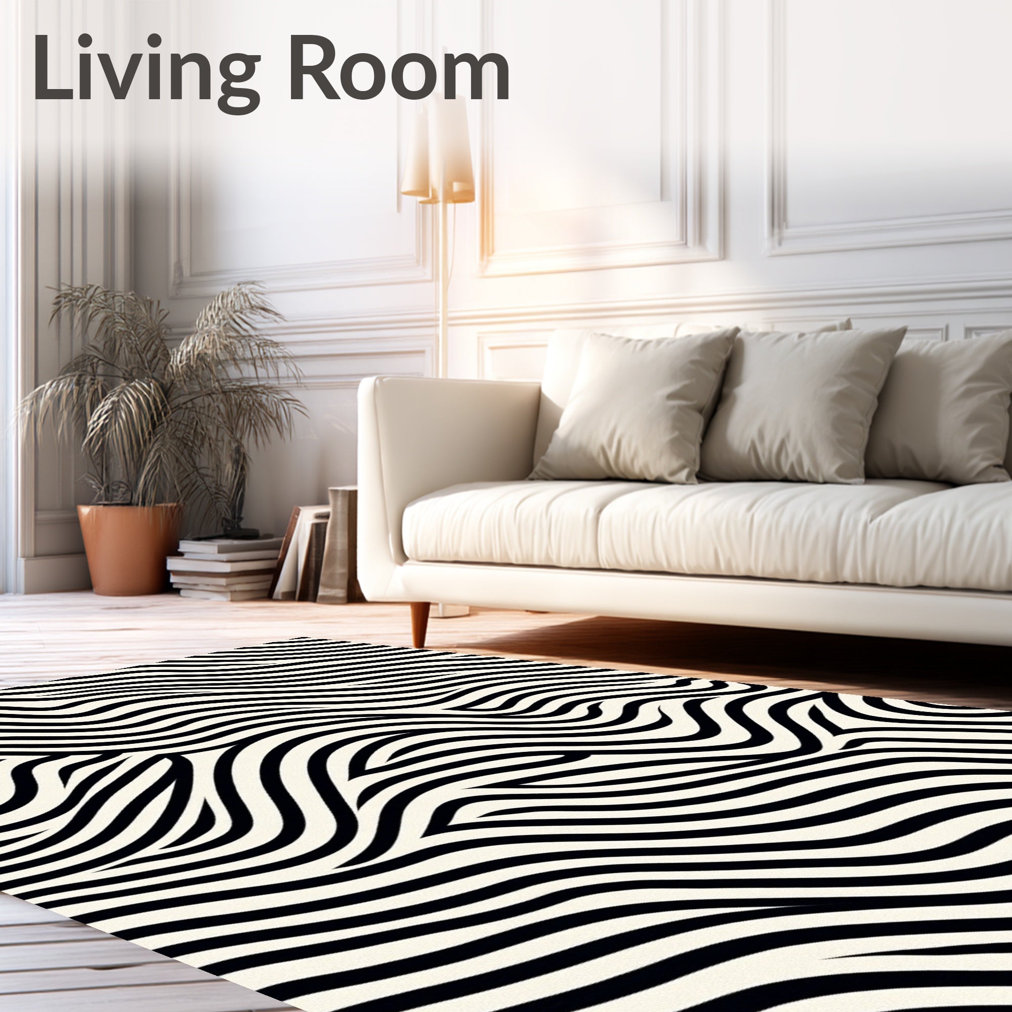 Ultra Soft Area Rug, Non Slip, Stain Resistant, Washable Area Rugs for Living Room, Bedroom, Abstract Zebra Stripe Waves with Flowing Curved Lines Contemporary Style(Black) Overview: