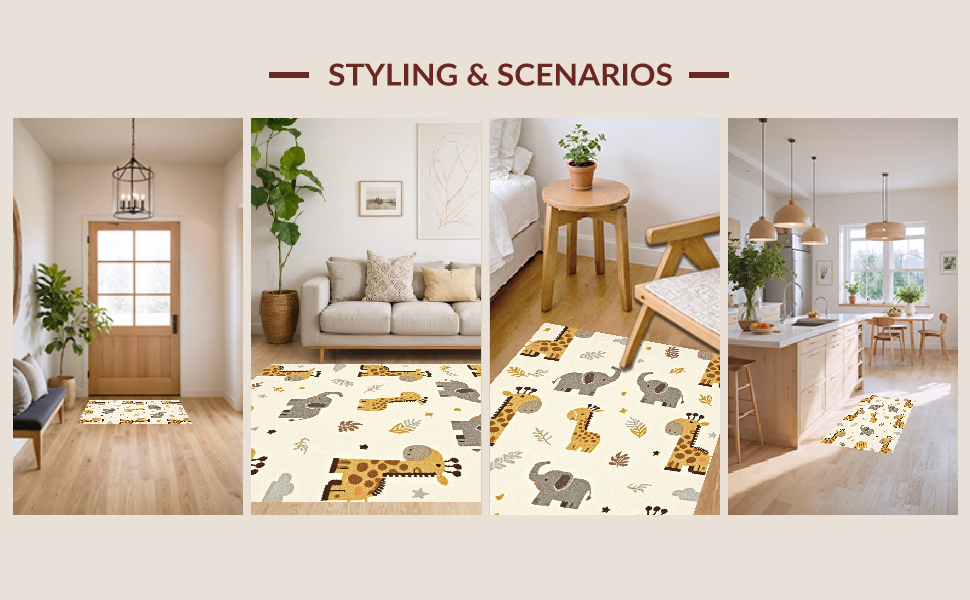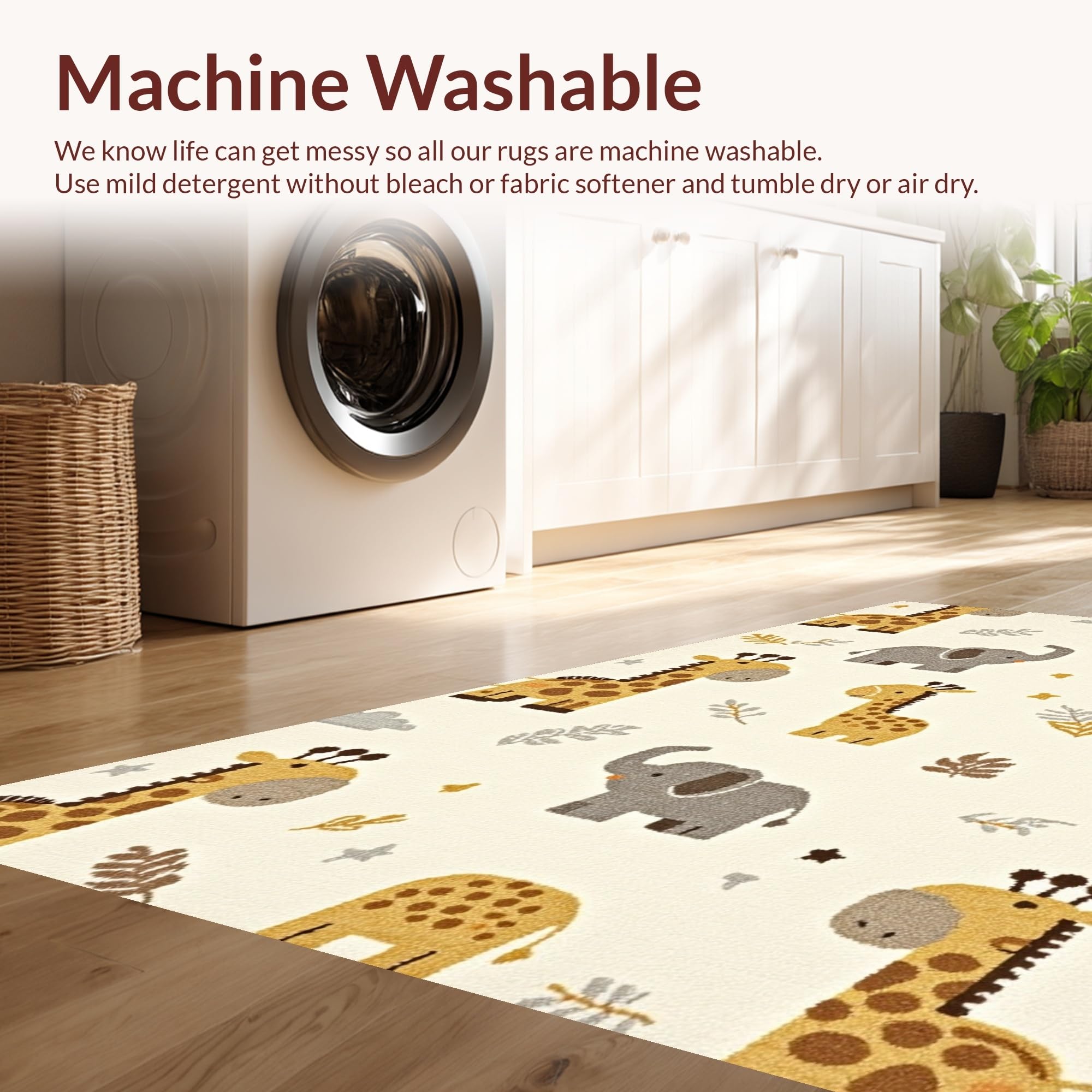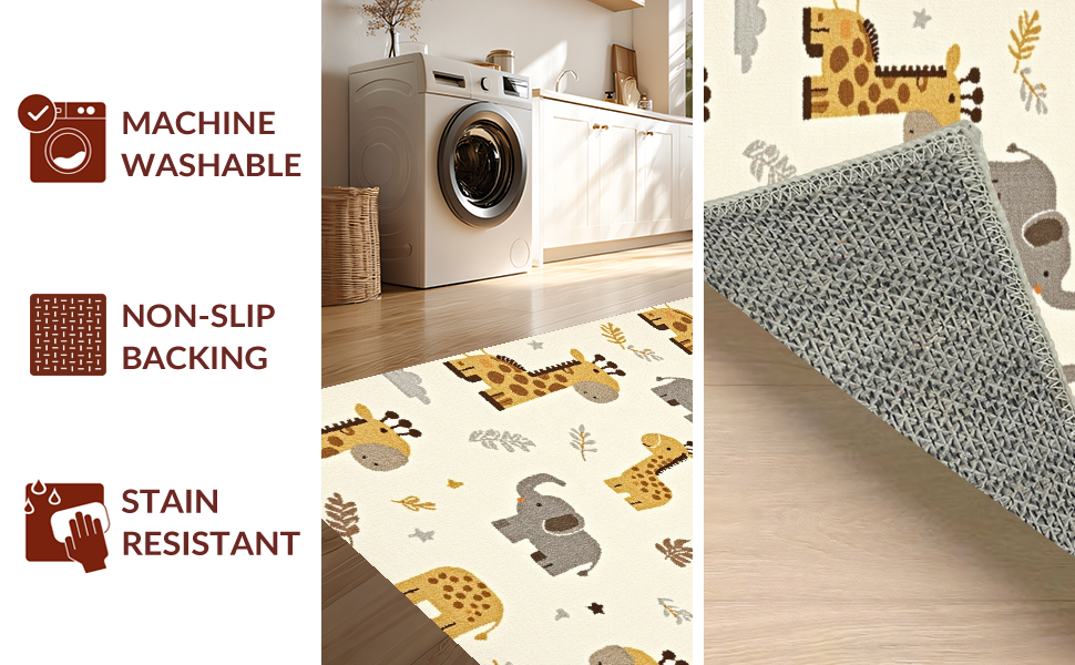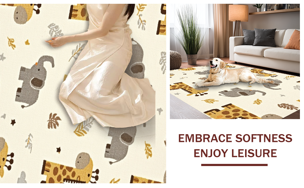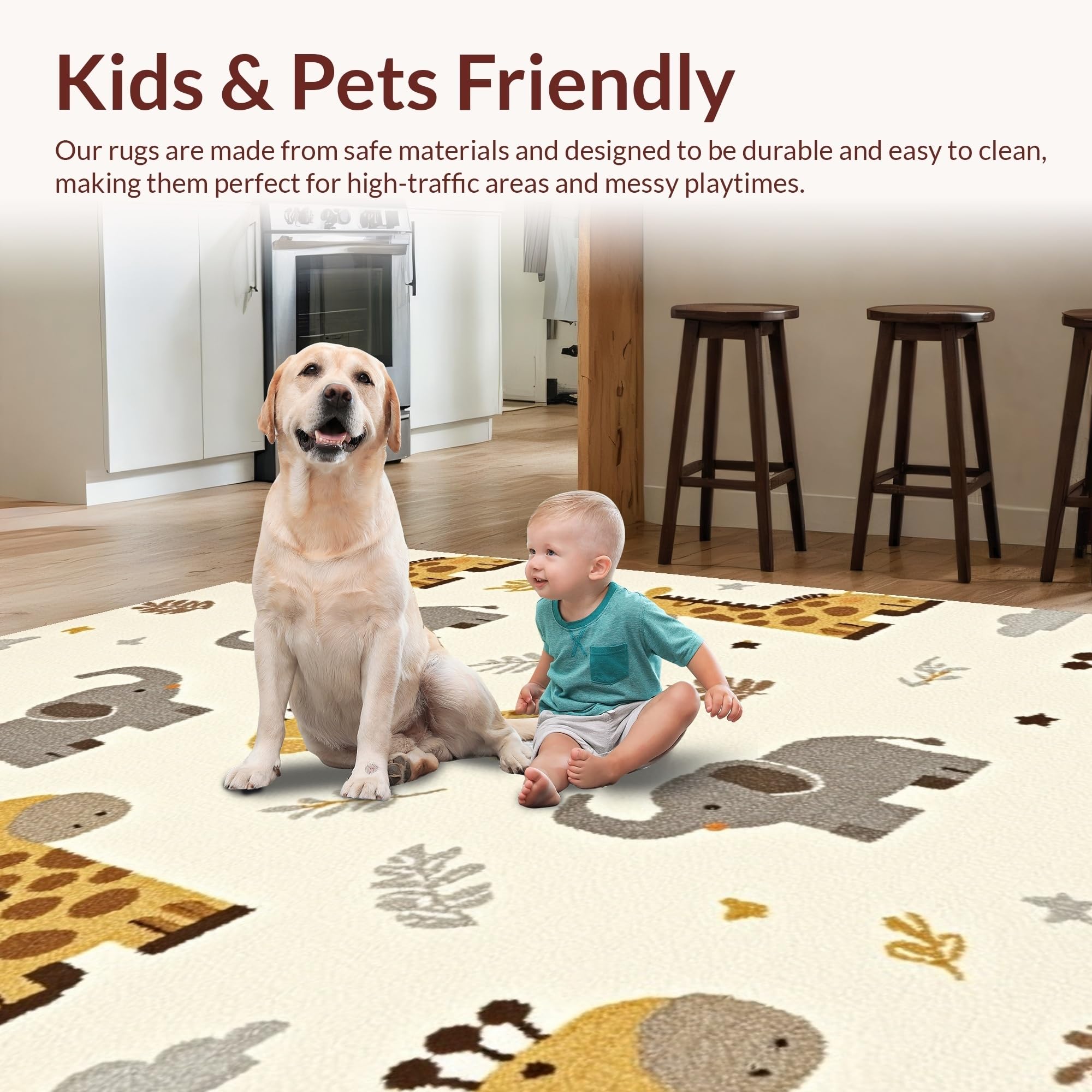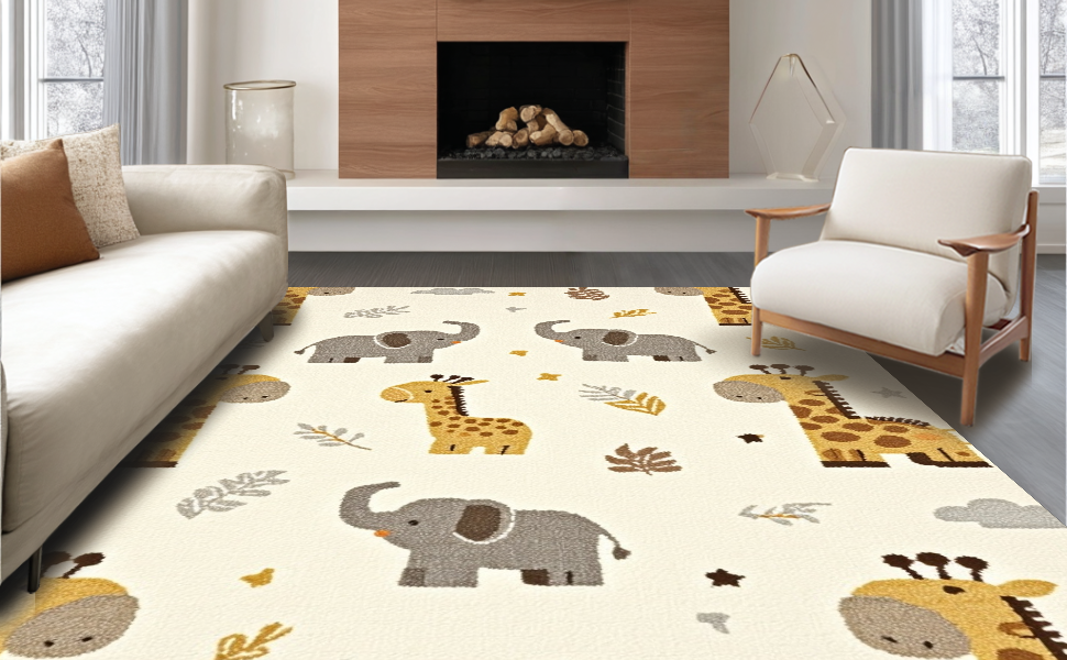 Ultra Soft Area Rug, Non Slip, Stain Resistant, Washable Area Rugs for Living Room, Bedroom, Adorable Baby Shower Jungle Theme(Beige) Overview: