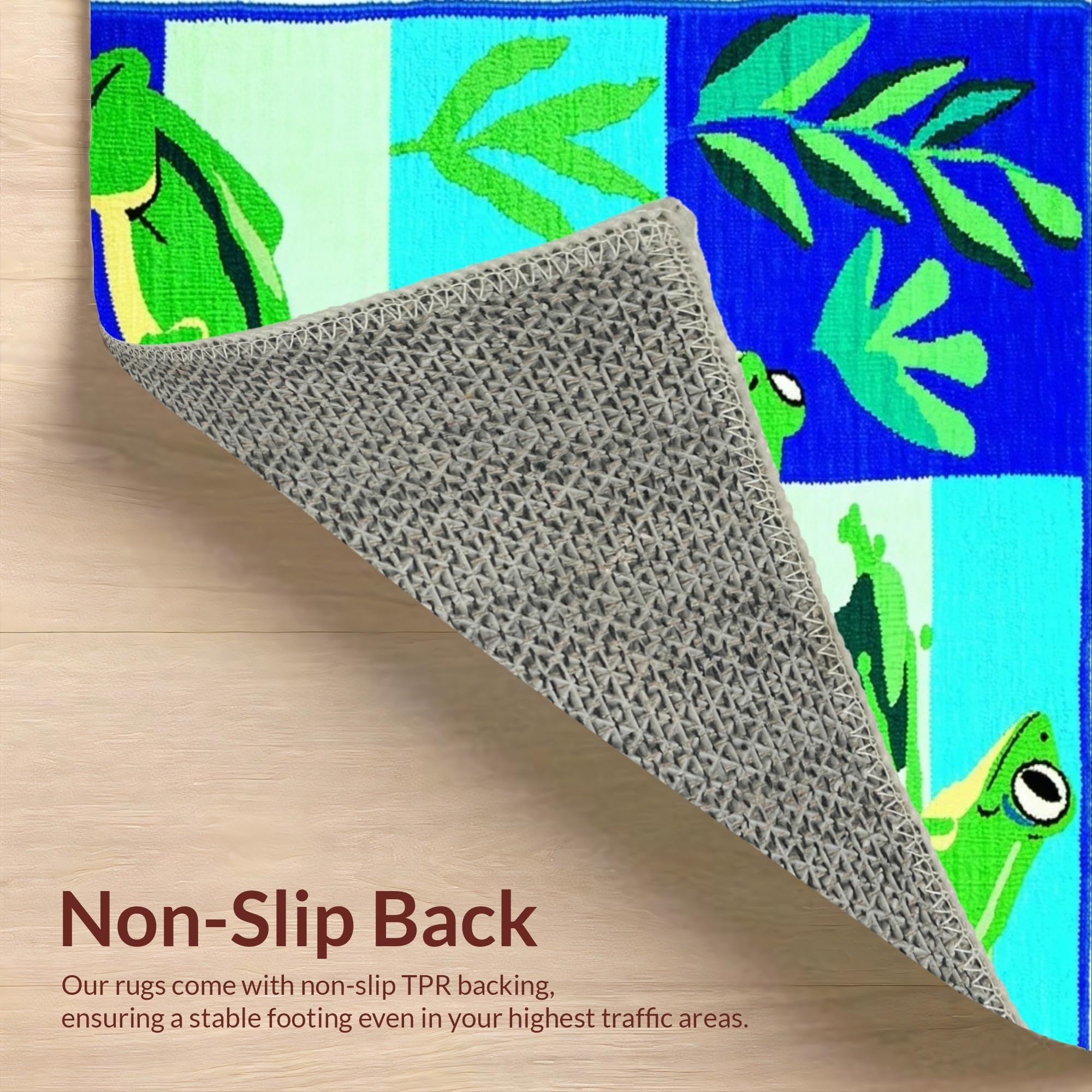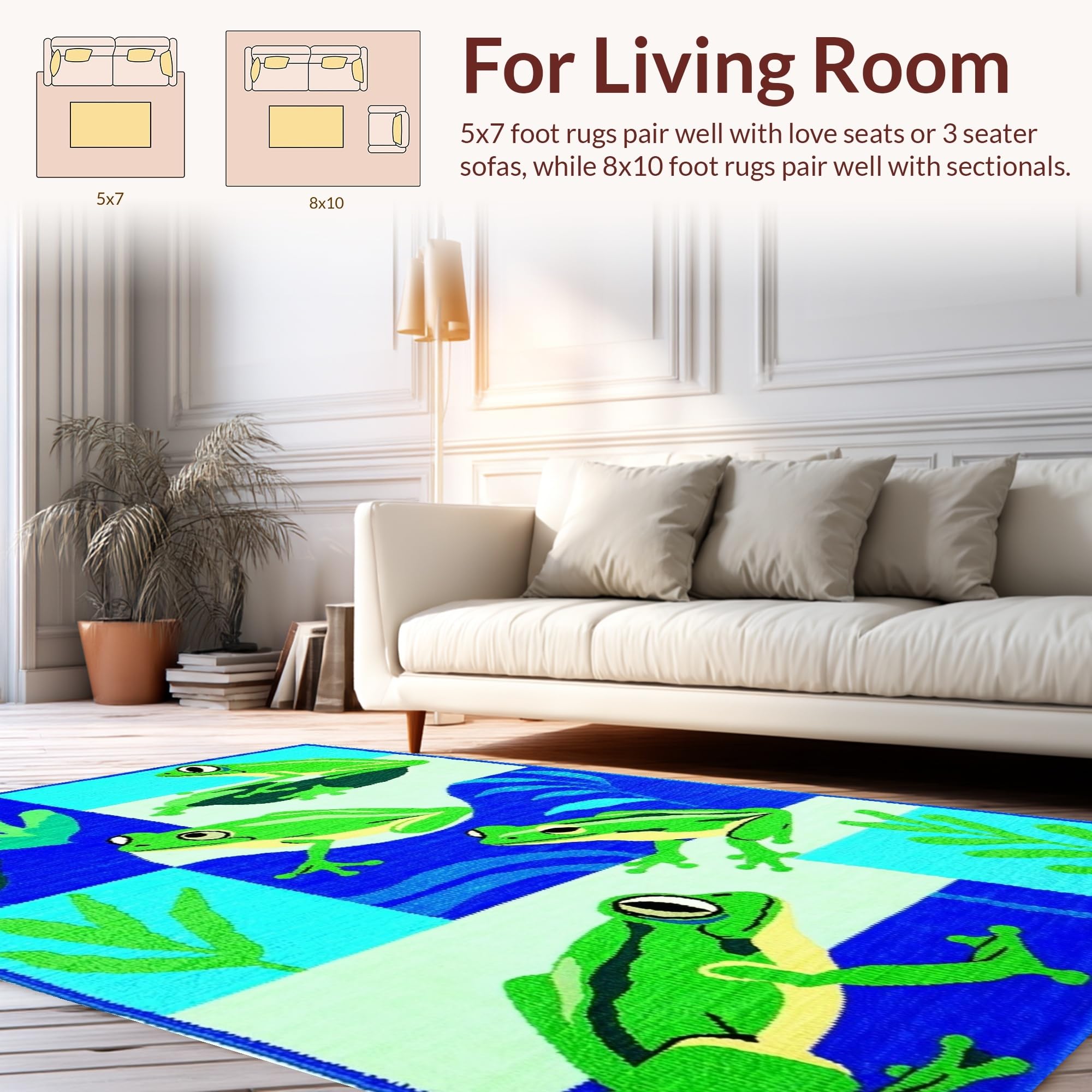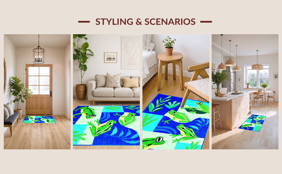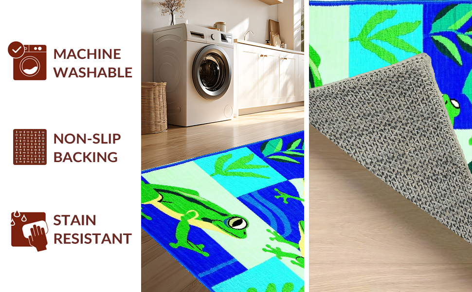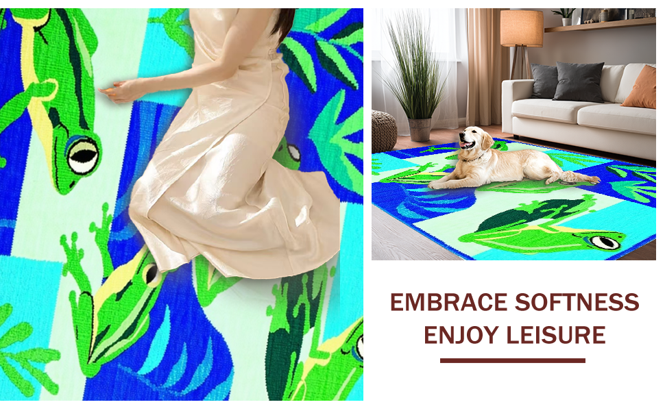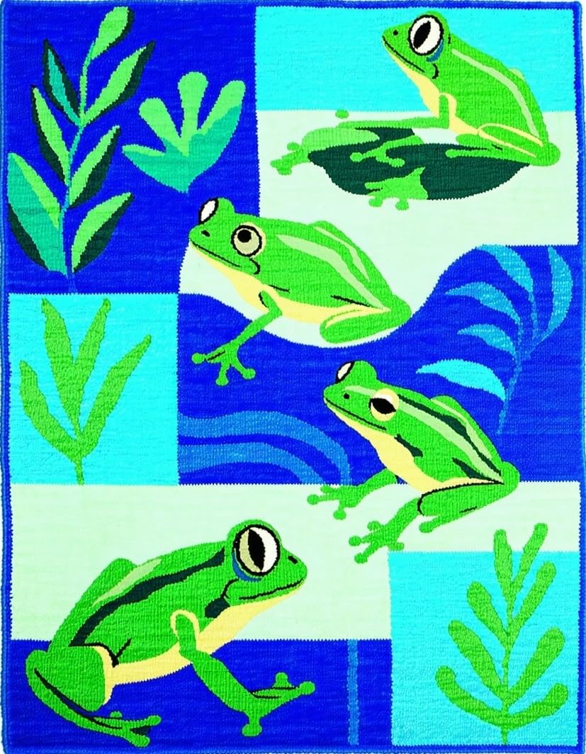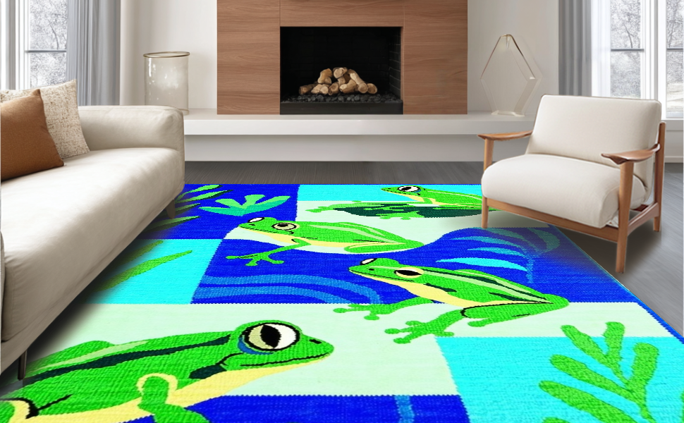 Ultra Soft Area Rug, Non Slip, Stain Resistant, Washable Area Rugs for Living Room, Bedroom, Adorable Frog Illustration Design(Blue) Overview: