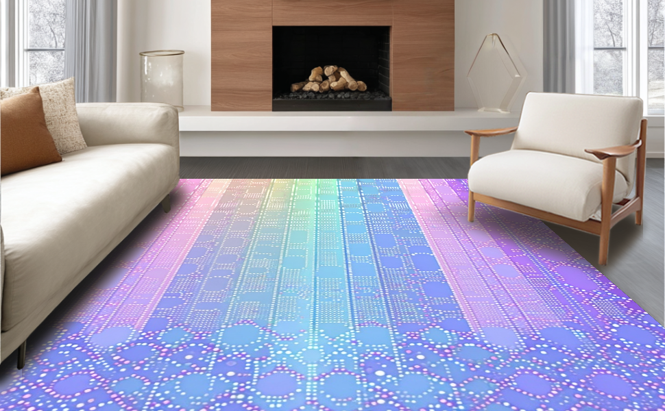 Ultra Soft Area Rug, Non Slip, Stain Resistant, Washable Area Rugs for Living Room, Bedroom, Adorable Fuzzy Celestial Design(Purple) Overview: