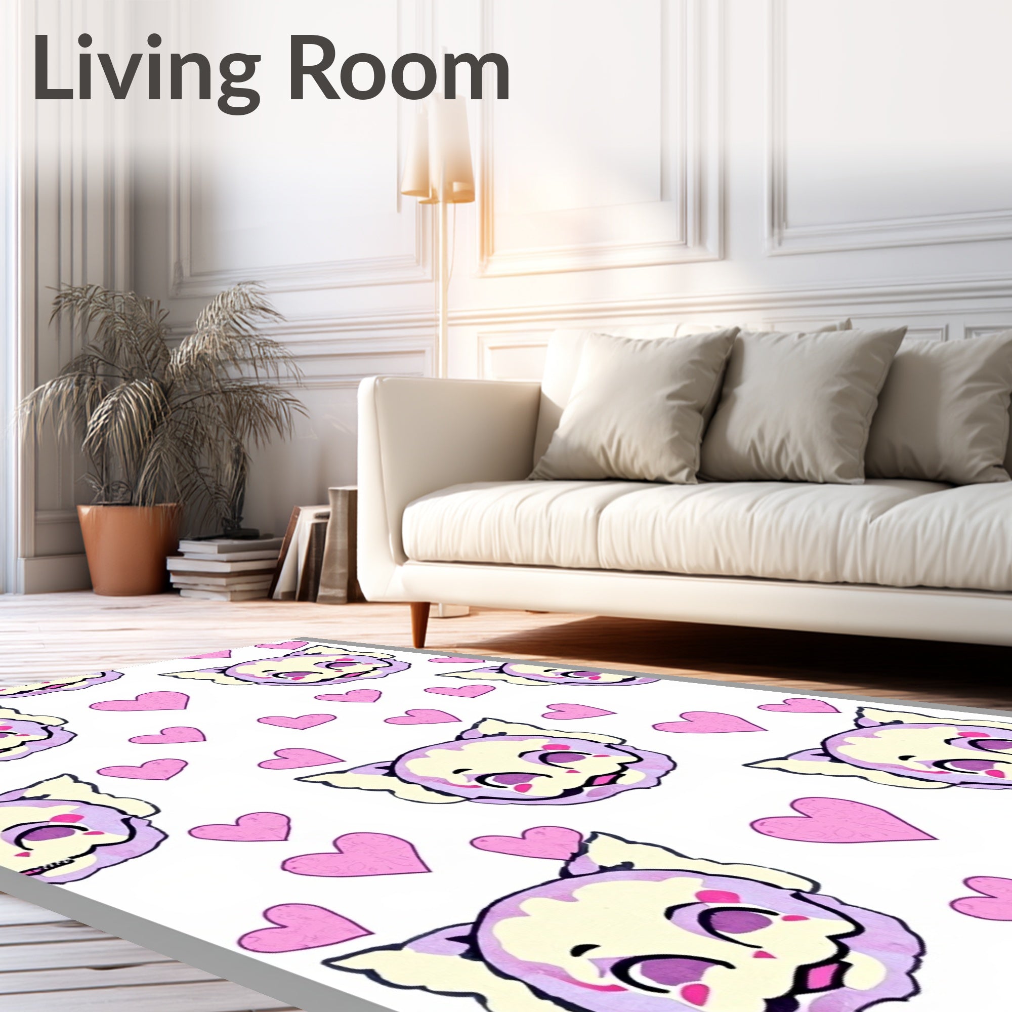 Adorable Kitten Portrait Design Floor with Hearts(Pink)