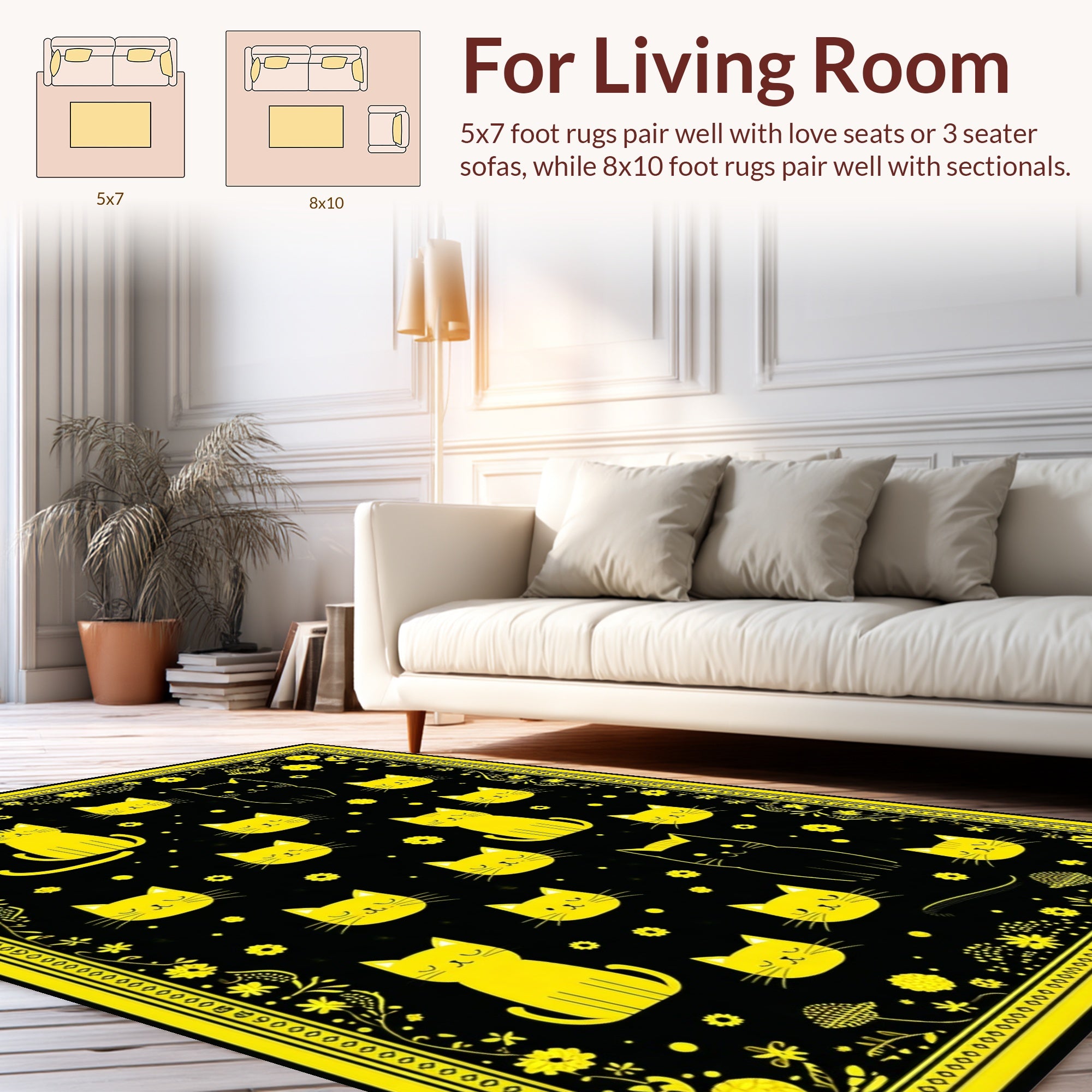 Flatwoven High Traffic Area Rug, Adorable Non Slip Pet Accent, Non Slip, Stain Resistant, Washable Area Rugs for Living Room, Bedroom (Black) Overview: