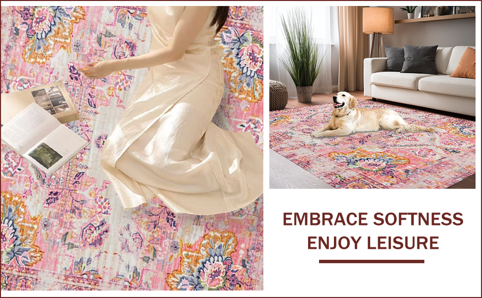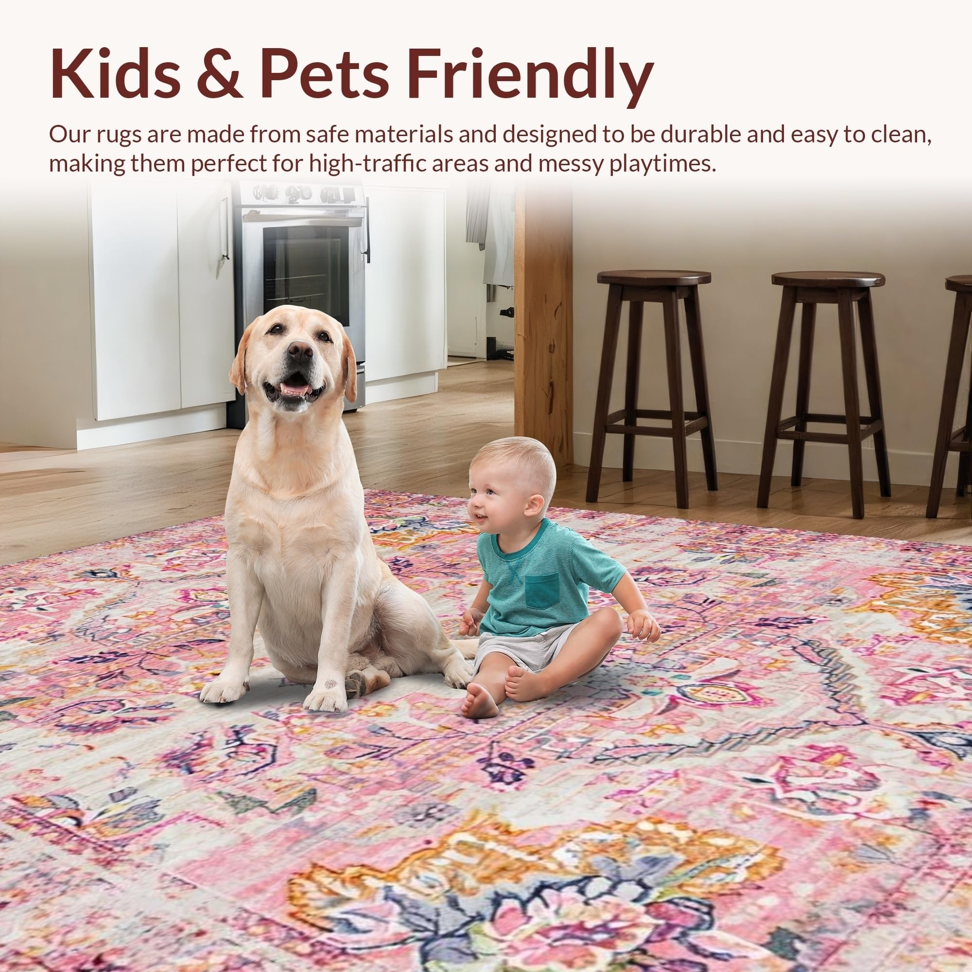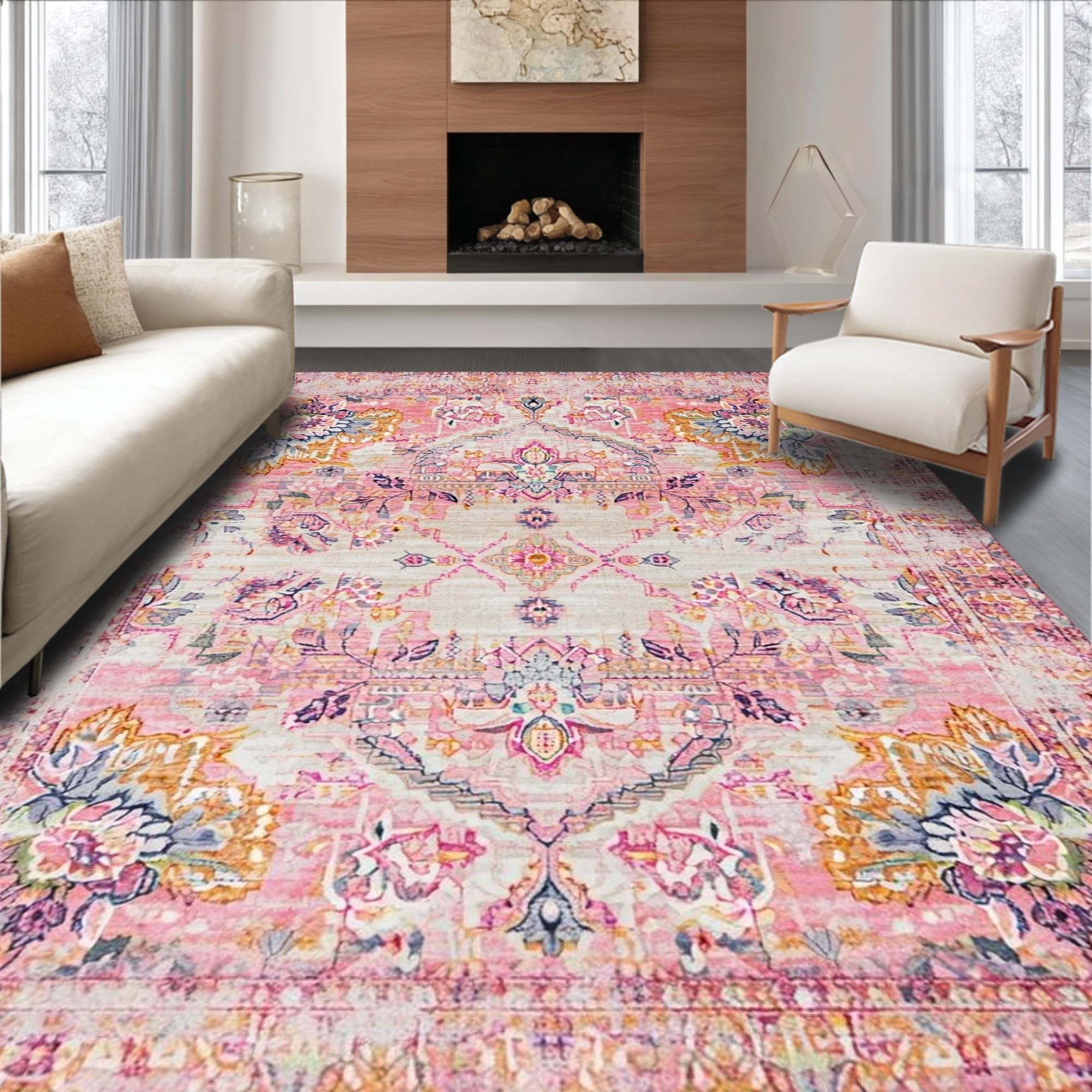 Ultra Soft Area Rug, Non Slip, Stain Resistant, Washable Area Rugs for Living Room, Bedroom, Adorable Pastel Garden Design(Pink) Overview:
