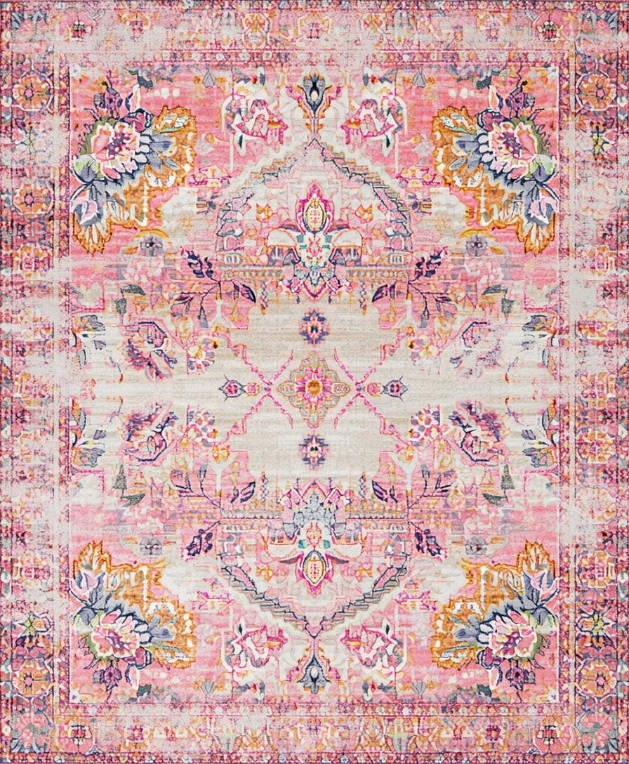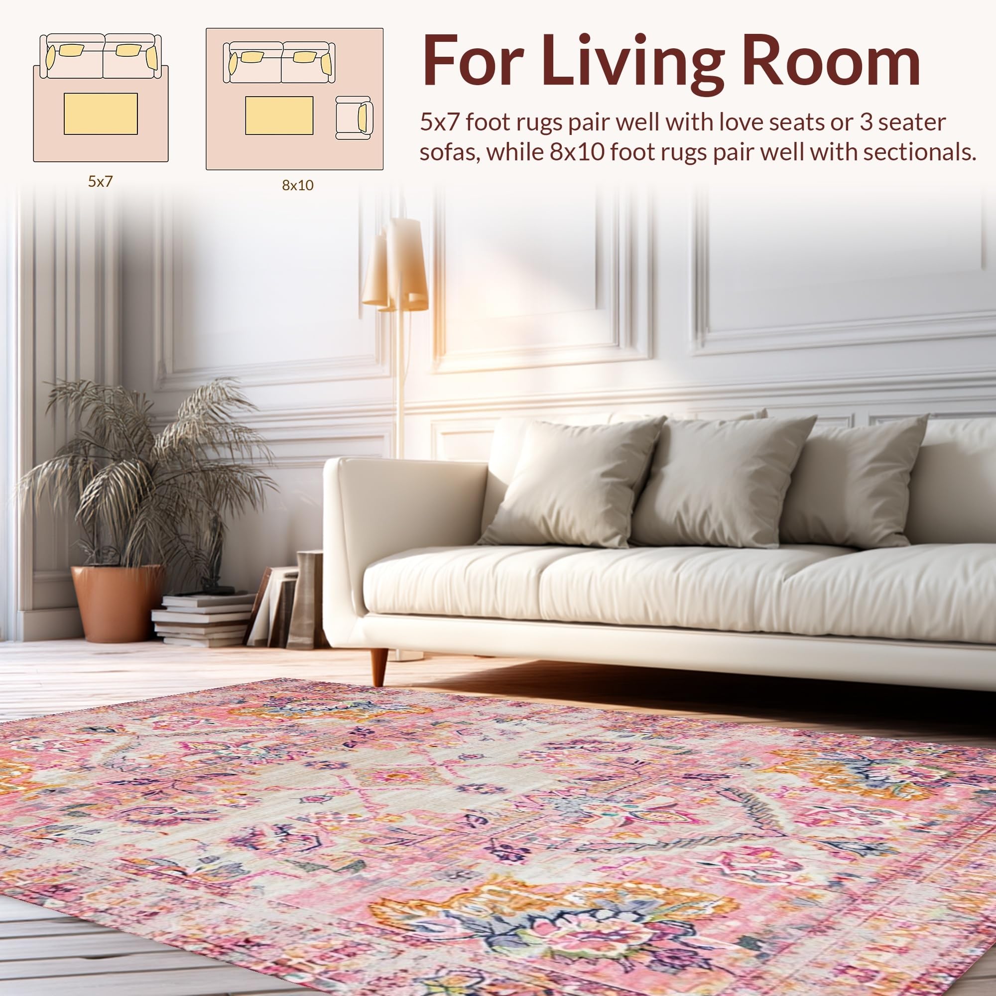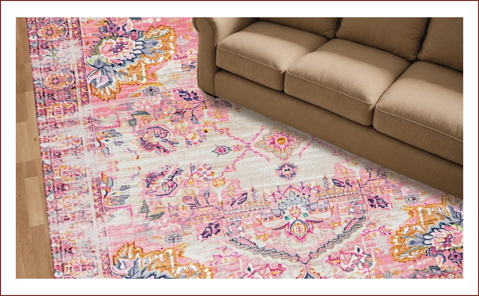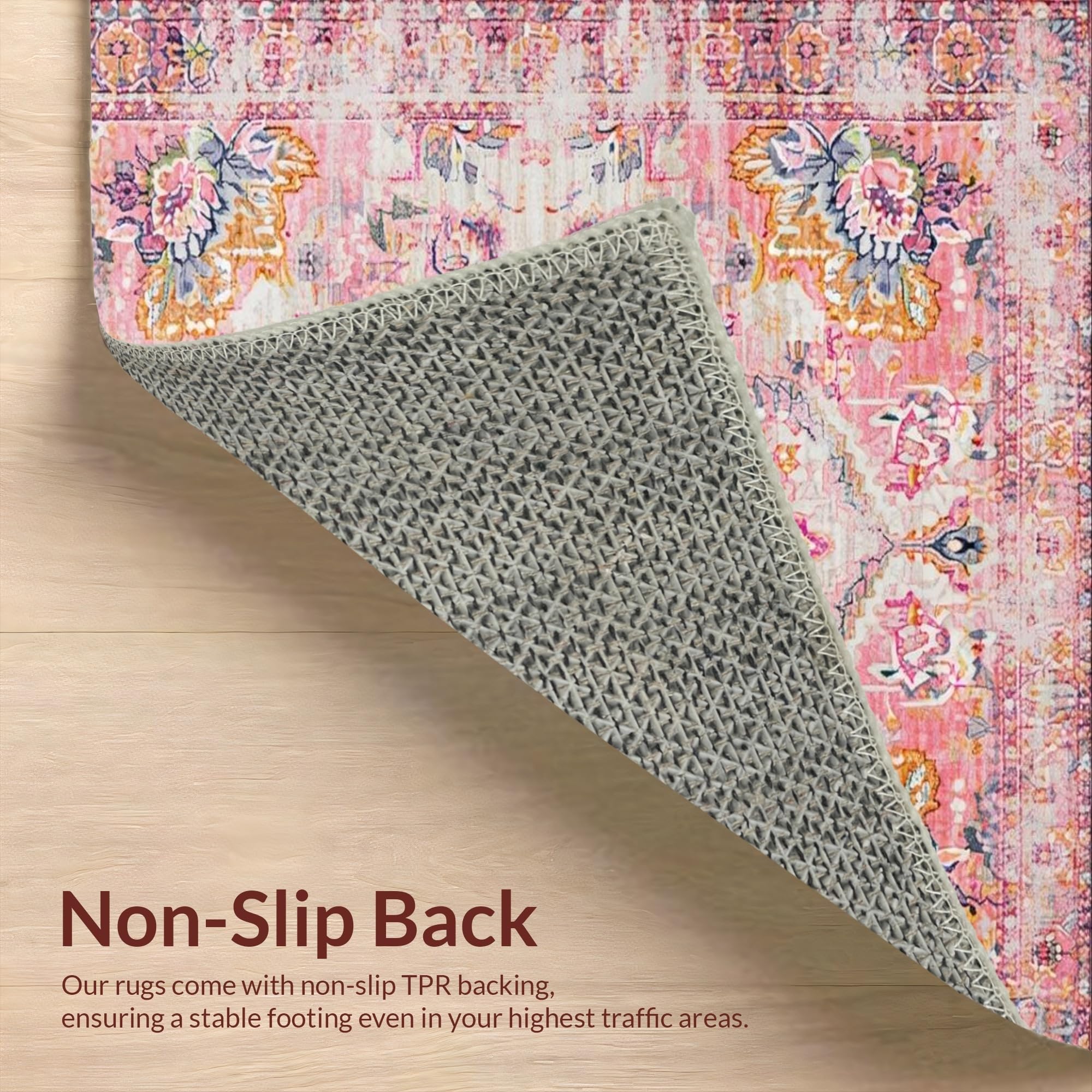 Ultra Soft Area Rug, Non Slip, Stain Resistant, Washable Area Rugs for Living Room, Bedroom, Adorable Pastel Garden Design(Pink) Overview: