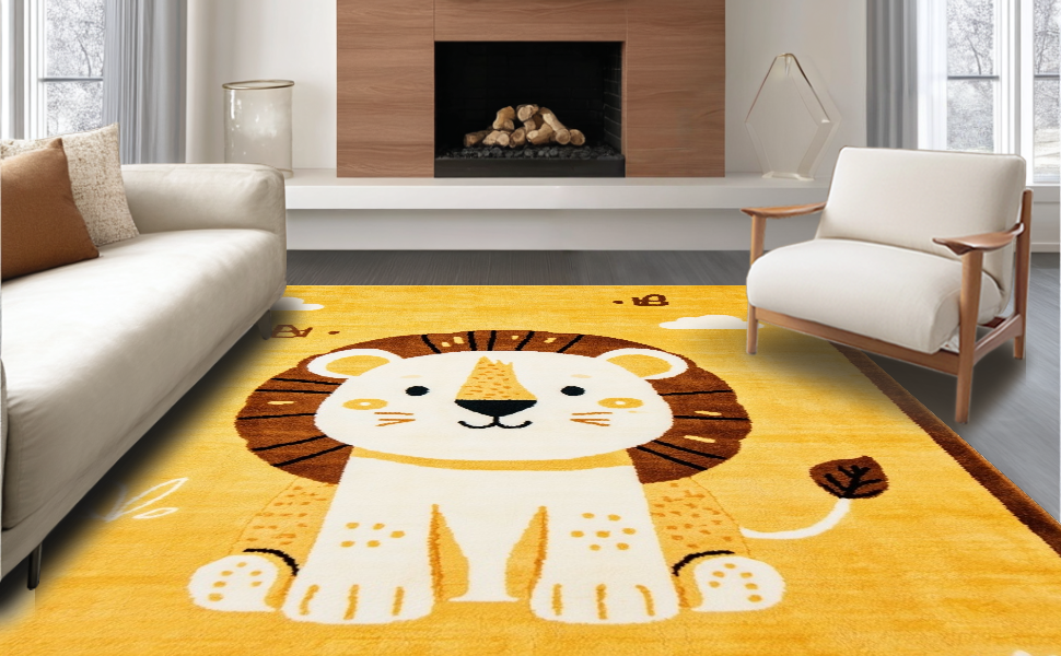 Ultra Soft Area Rug, Non Slip, Stain Resistant, Washable Area Rugs for Living Room, Bedroom, Adorable Round Wildlife Motif(Yellow) Overview:
