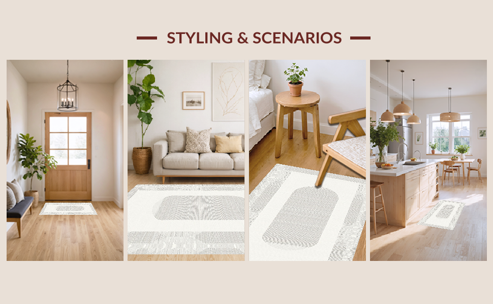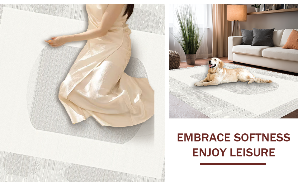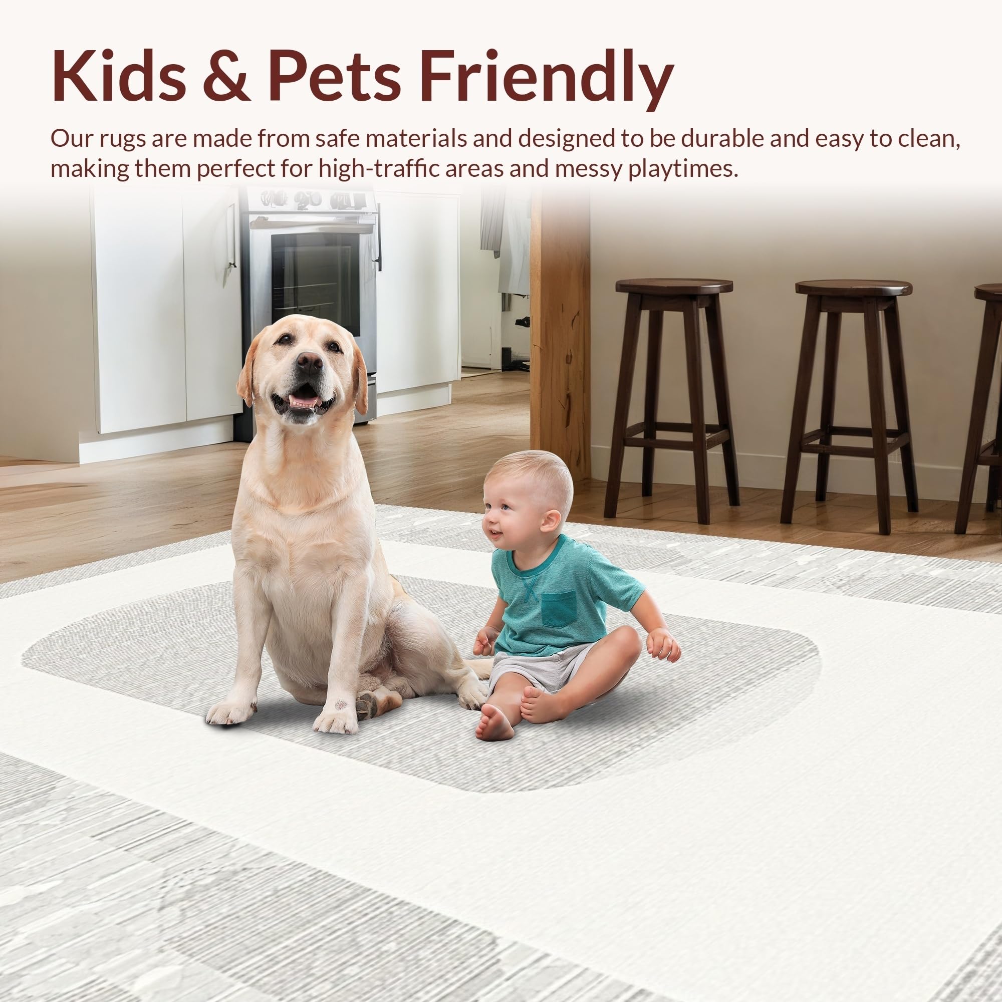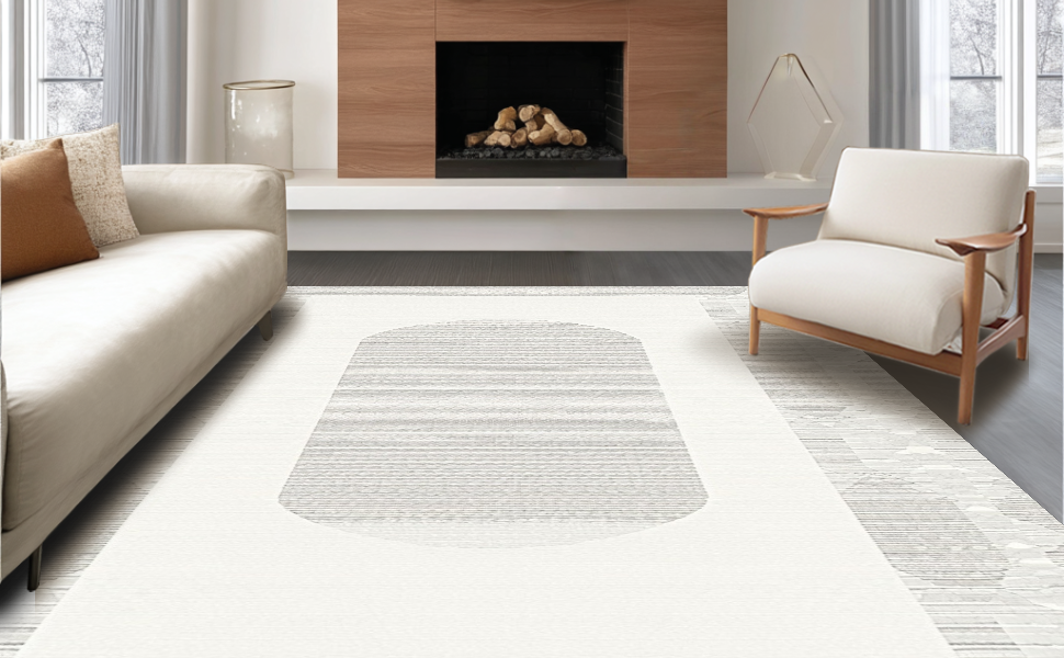 Ultra Soft Area Rug, Non Slip, Stain Resistant, Washable Area Rugs for Living Room, Bedroom, Airy Light Toned Geometric Arrangement(Beige) Overview: