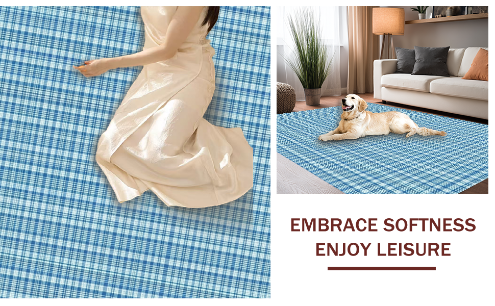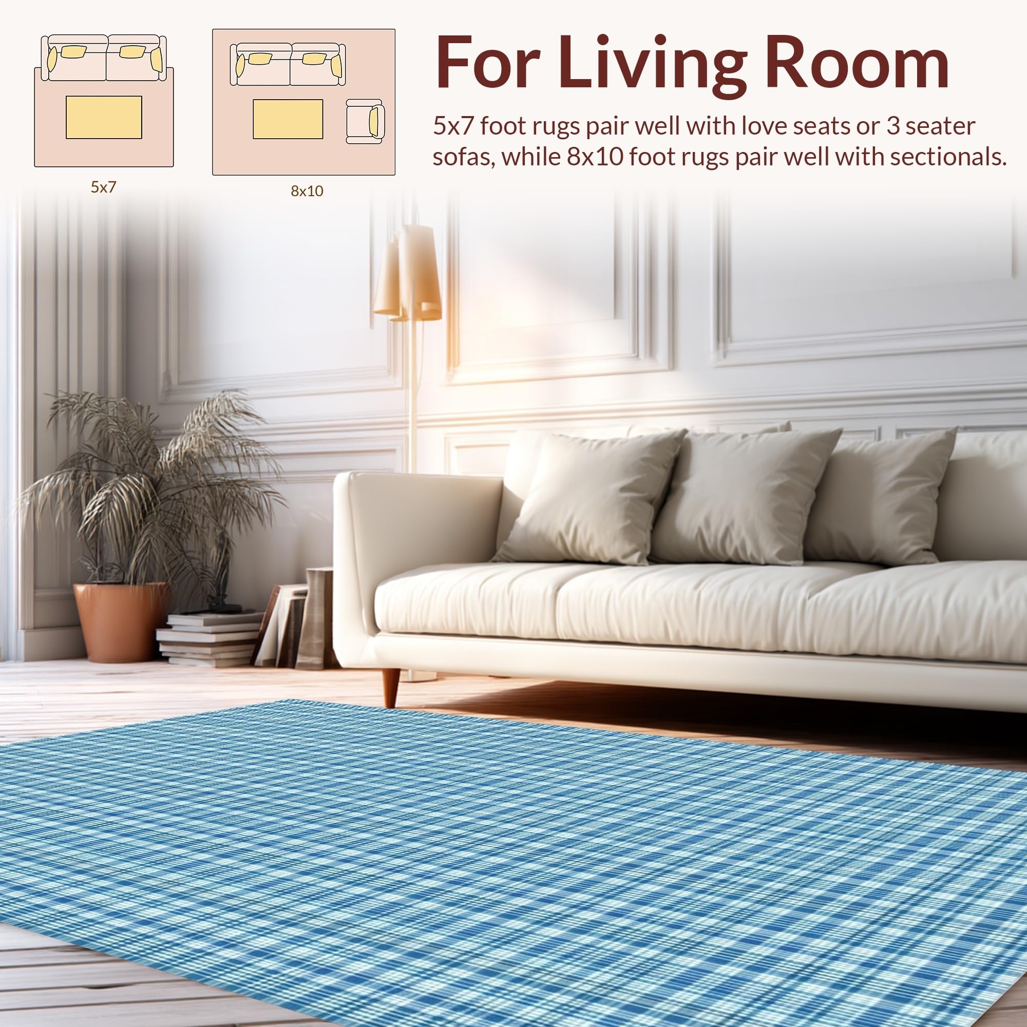 Ultra Soft Area Rug, Non Slip, Stain Resistant, Washable Area Rugs for Living Room, Bedroom, Airy Outdoor Plaid Fusion(Blue) Overview:
