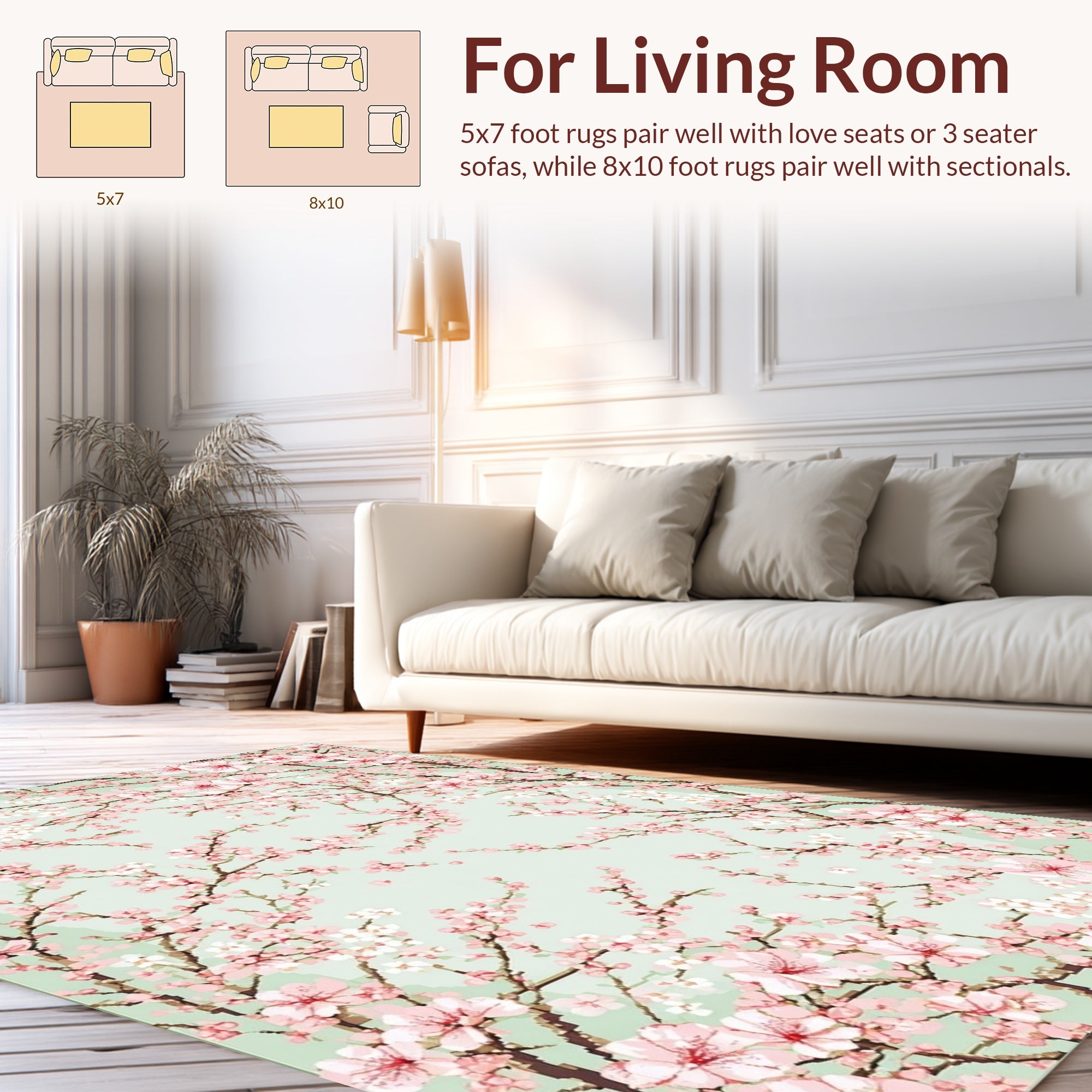 Flatwoven High Traffic Area Rug, Airy Pink Floral Elegance, Non Slip, Stain Resistant, Washable Area Rugs for Living Room, Bedroom (Pink) Overview: