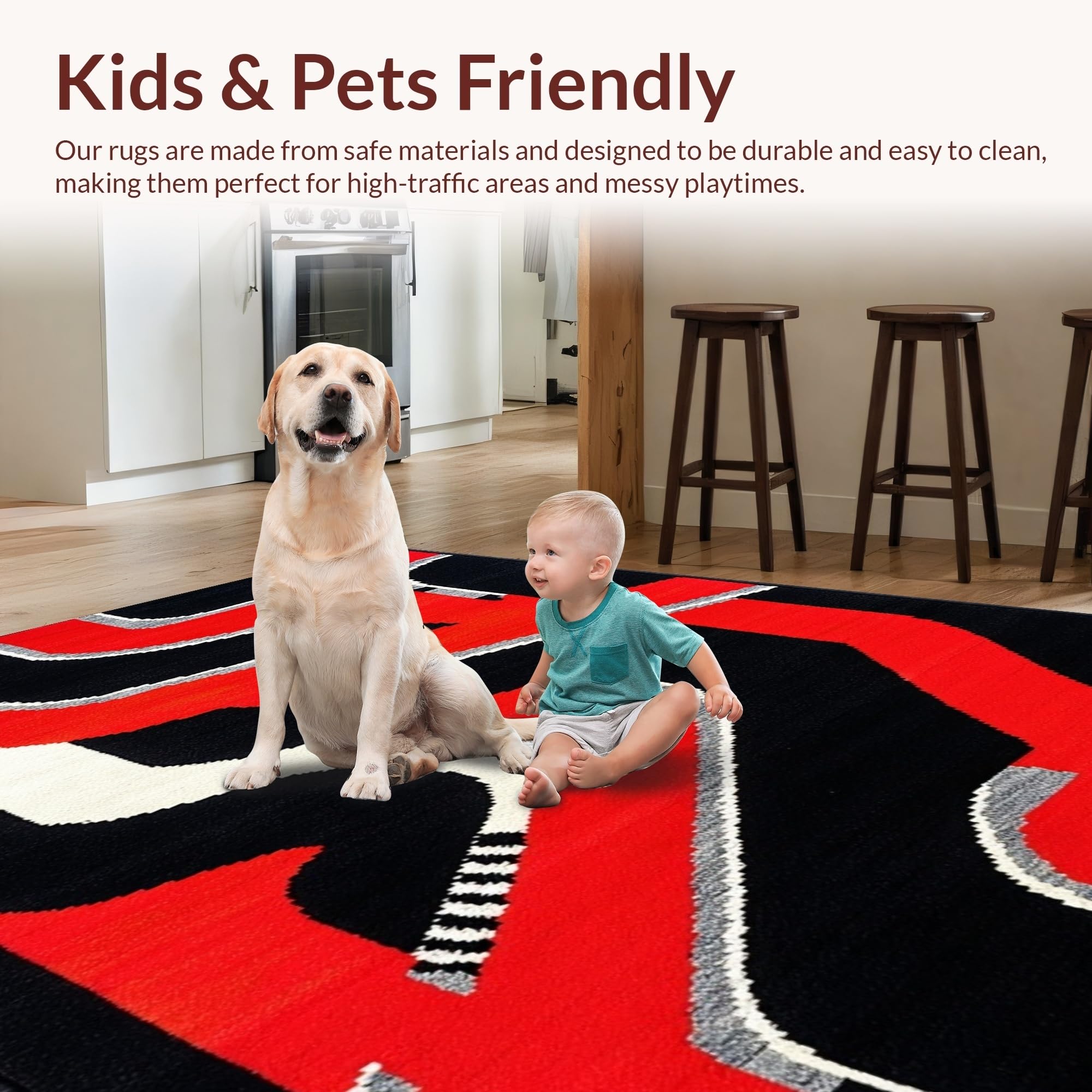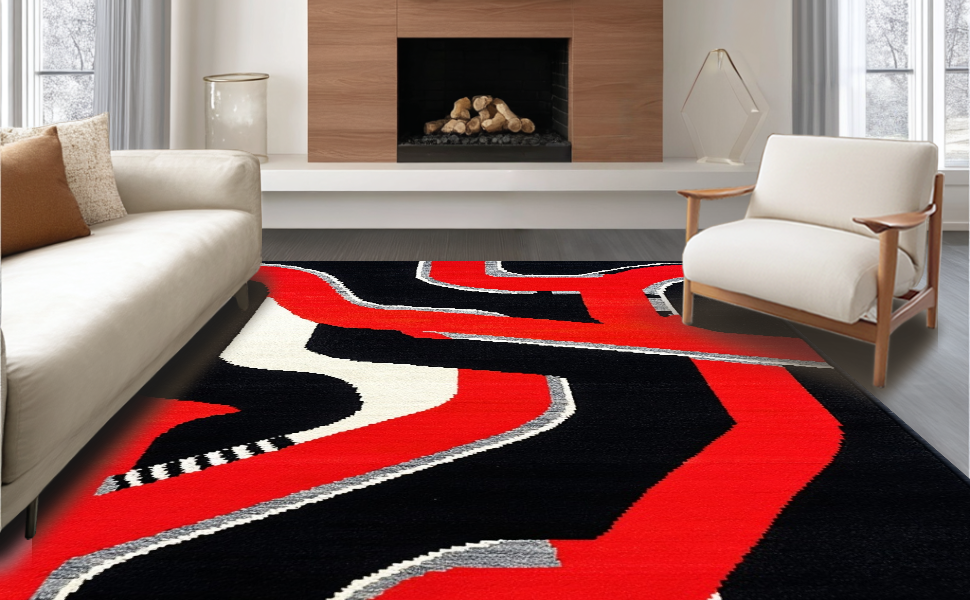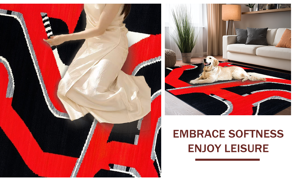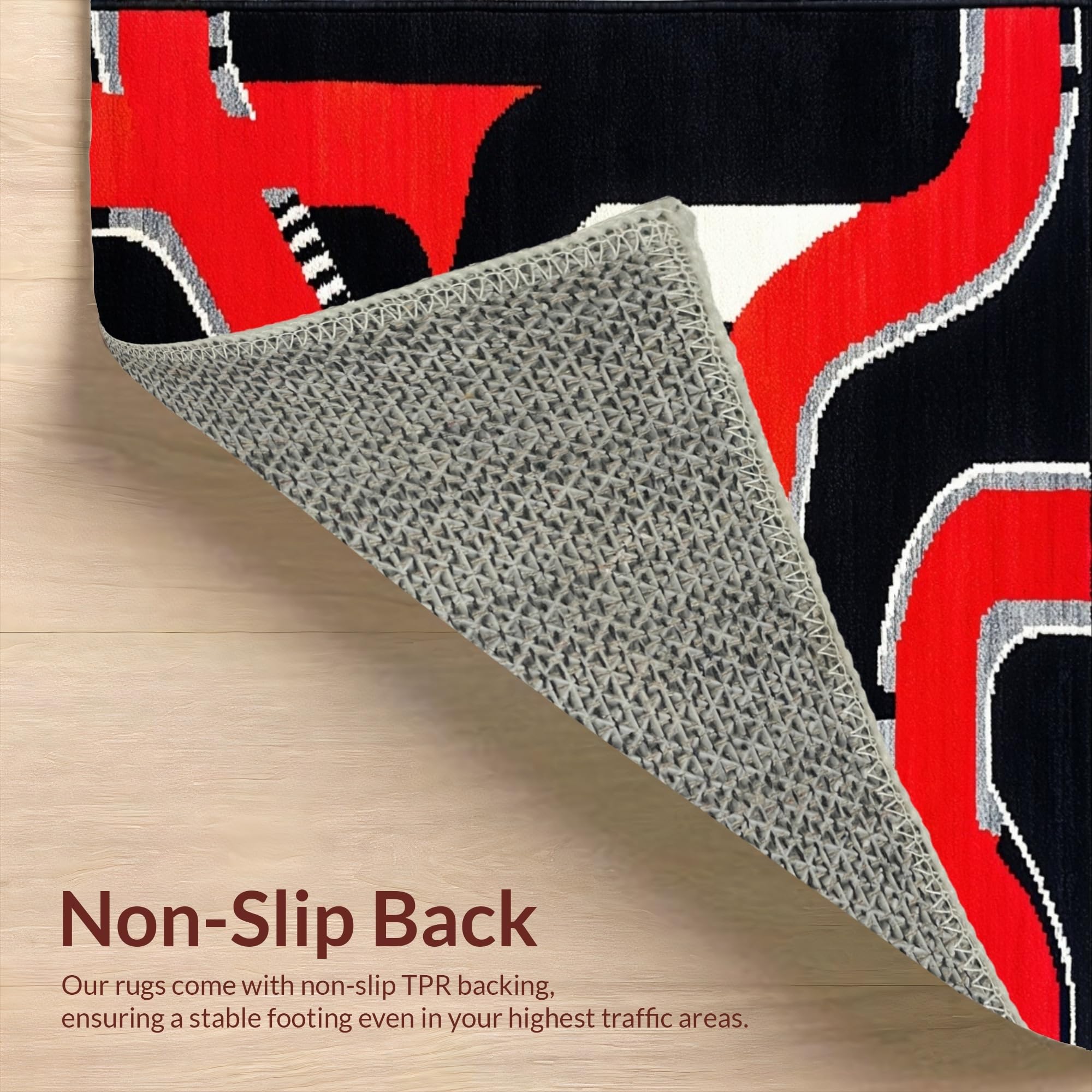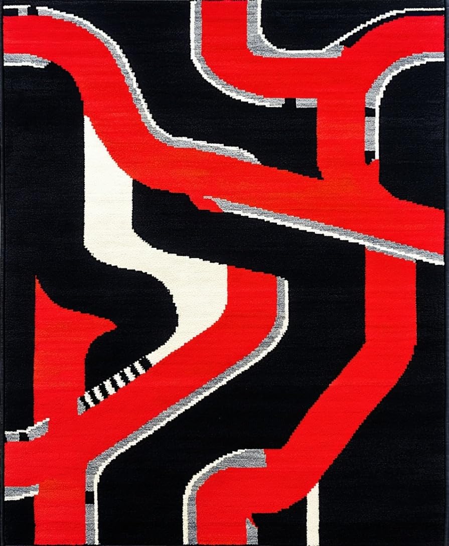 Ultra Soft Area Rug, Non Slip, Stain Resistant, Washable Area Rugs for Living Room, Bedroom, Alive with Motion Racing Layout(Black) Overview: