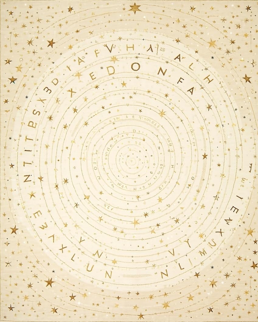 Ultra Soft Area Rug, Non Slip, Stain Resistant, Washable Area Rugs for Living Room, Bedroom, Alphabet Galaxy Round Area For Education With Twinkling Star Elements(Beige) Overview: