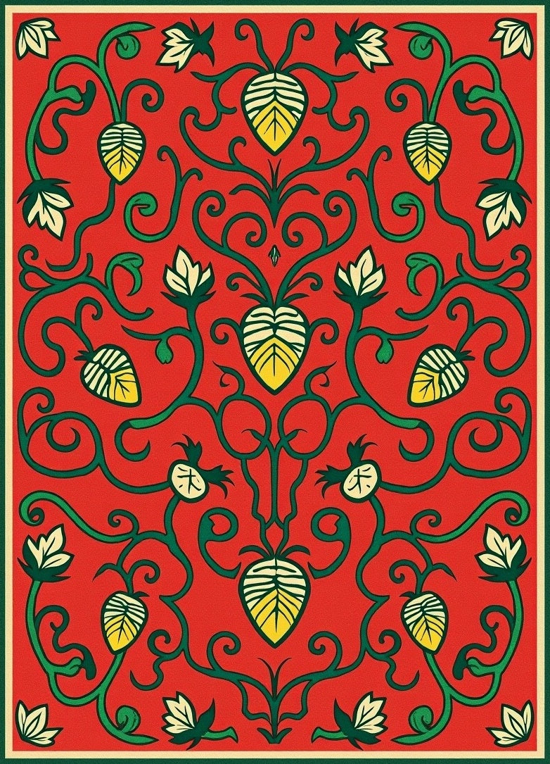 Amber Folk Art Oak Grove with Flowing Botanical Scrollwork(Red)