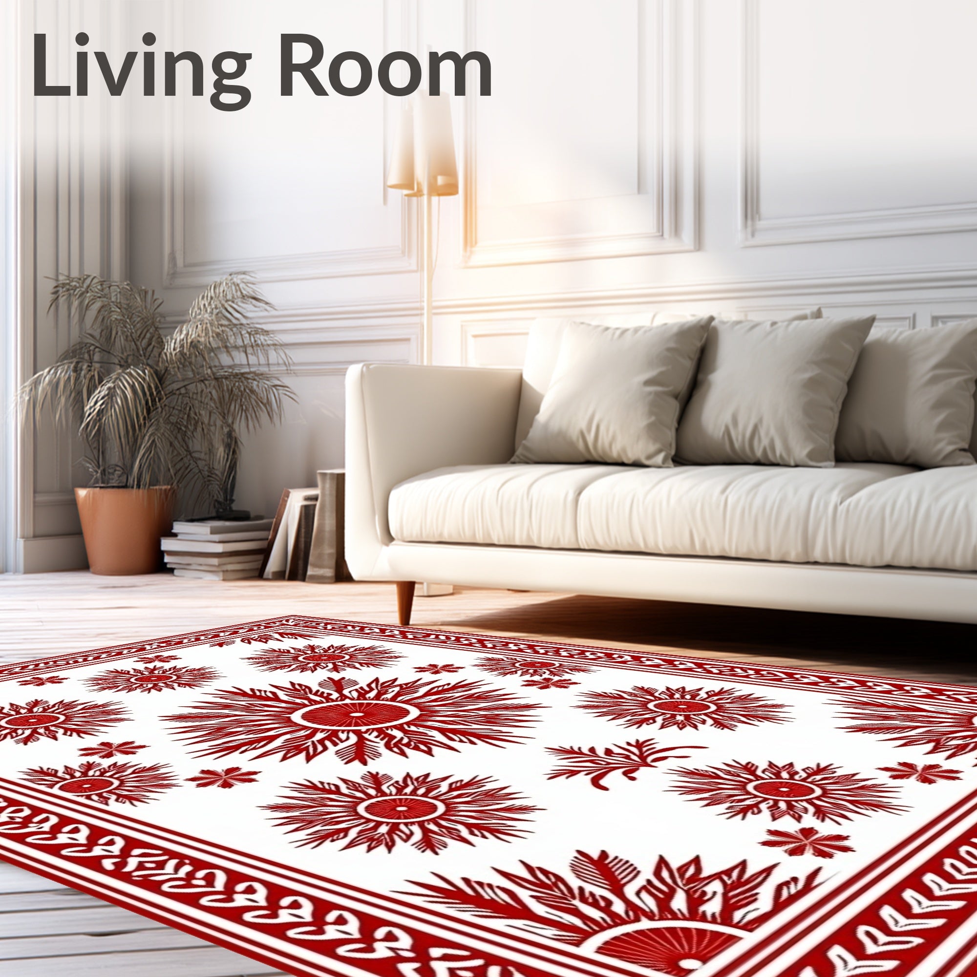 Ultra Soft Area Rug, Non Slip, Stain Resistant, Washable Area Rugs for Living Room, Bedroom, Amber Thistle Damask Heritage(Red) Overview: