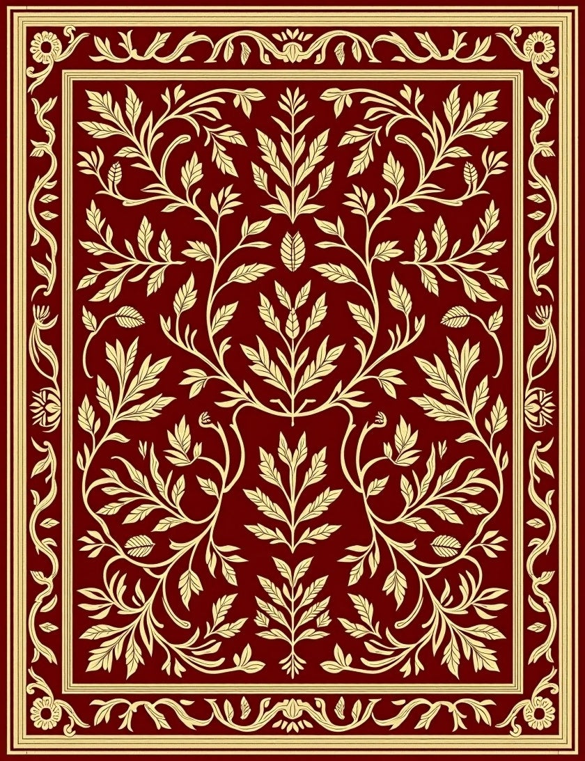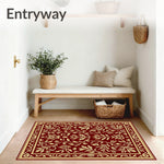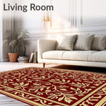 Ultra Soft Area Rug, Non Slip, Stain Resistant, Washable Area Rugs for Living Room, Bedroom, Amber Woodland Canopy Interlocking Foliage Ornament(Red) Overview: