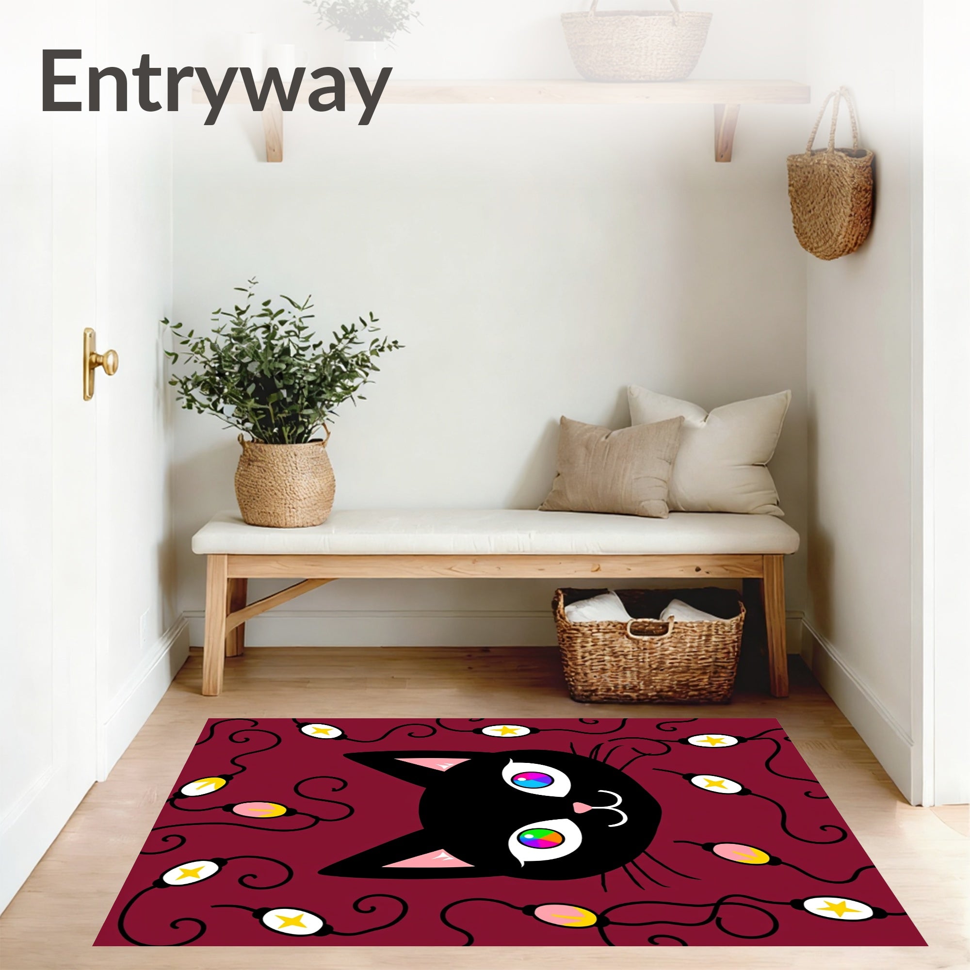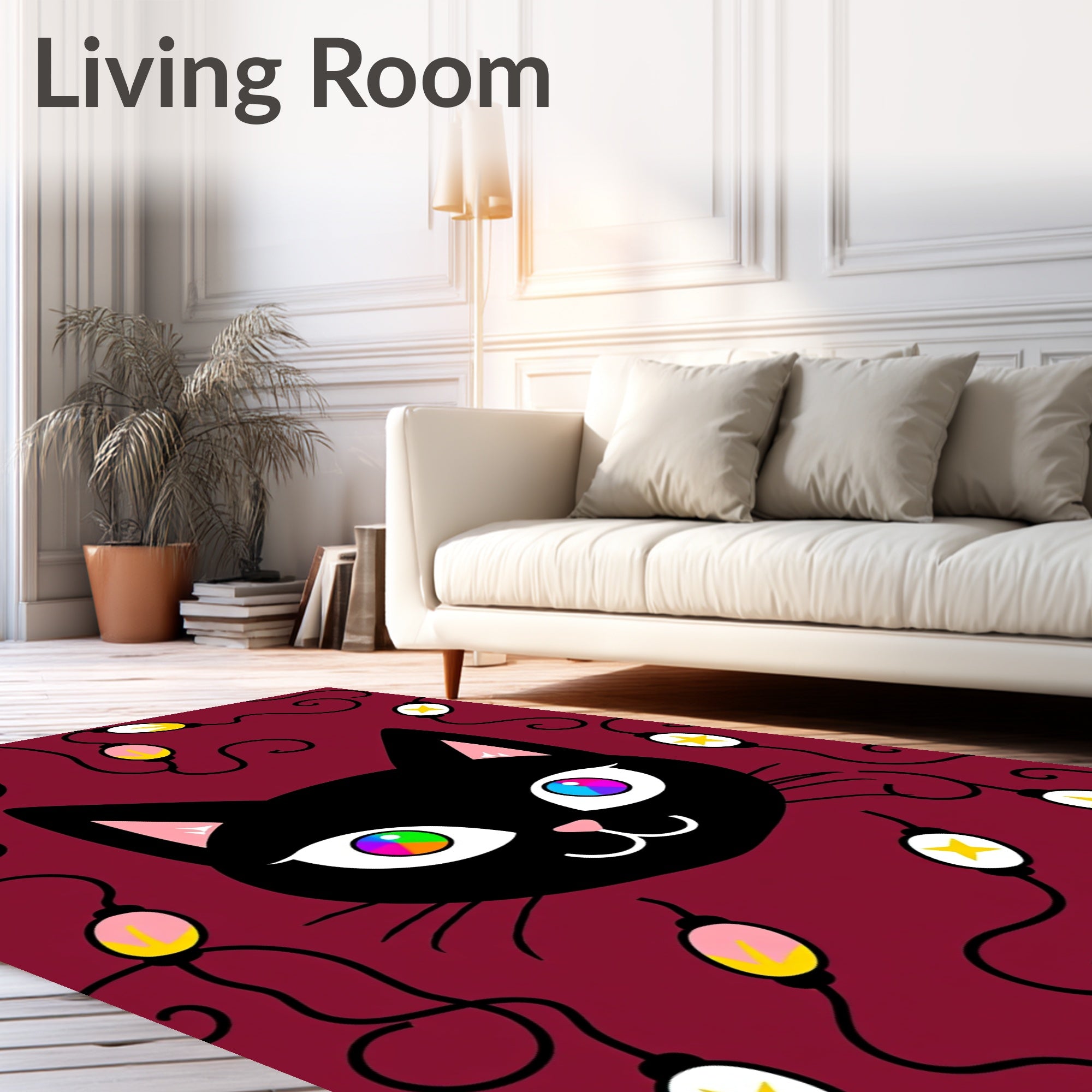 Ultra Soft Area Rug, Non Slip, Stain Resistant, Washable Area Rugs for Living Room, Bedroom, Amusing Radiant Paws Floor Covering Jolly Twinkling Whiskers(Black) Overview: