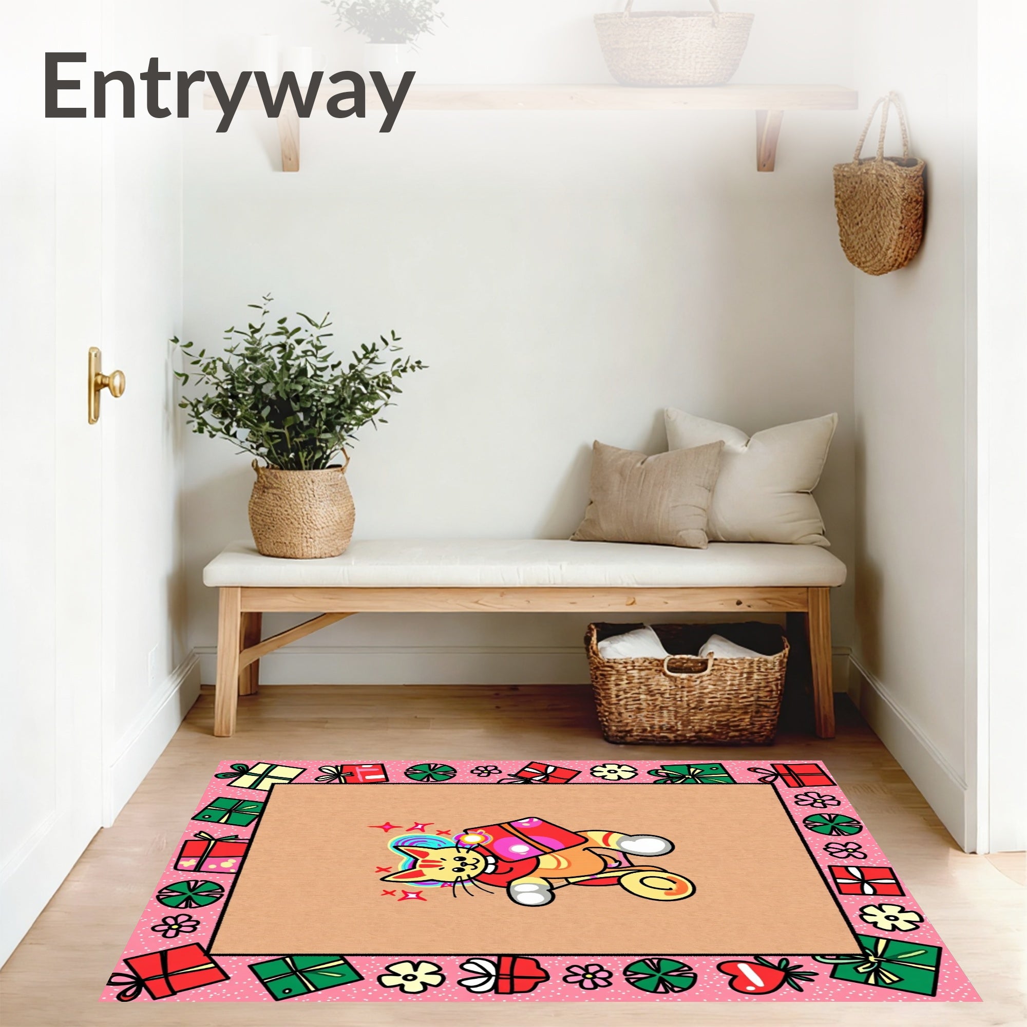 Ultra Soft Area Rug, Non Slip, Stain Resistant, Washable Area Rugs for Living Room, Bedroom, Amusing Sparkle Feline Joke Present(Beige) Overview: