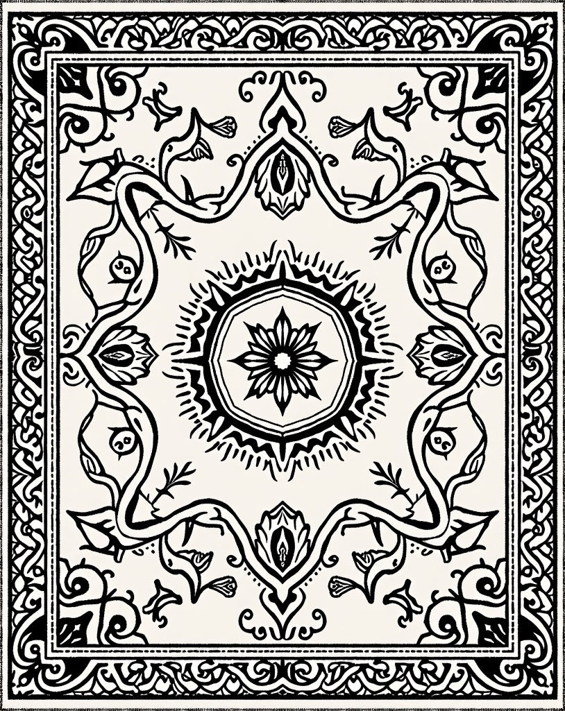 Andalusian Trellis Medallion with Distressed Boho Accents(Black)