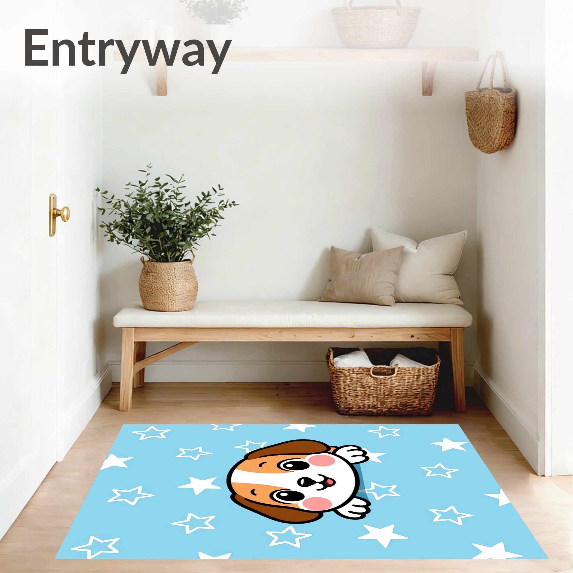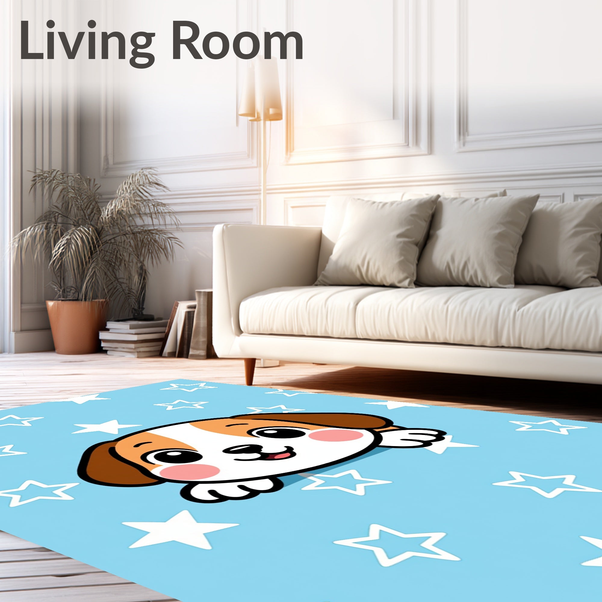 Ultra Soft Area Rug, Non Slip, Stain Resistant, Washable Area Rugs for Living Room, Bedroom, Animated Beagle Character Decorative Welcome(Blue) Overview: