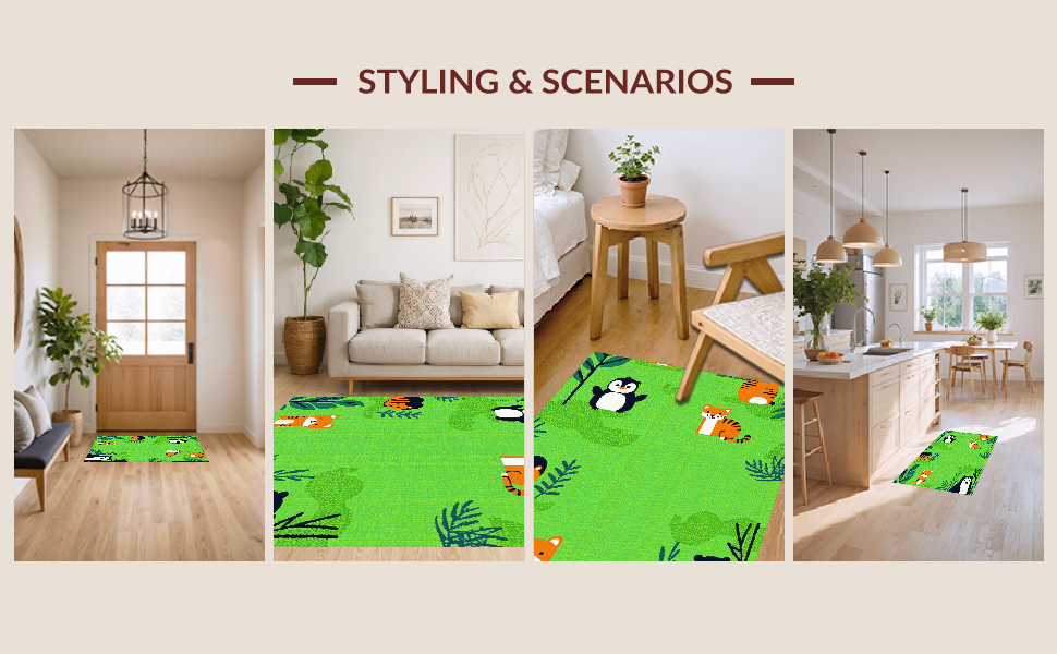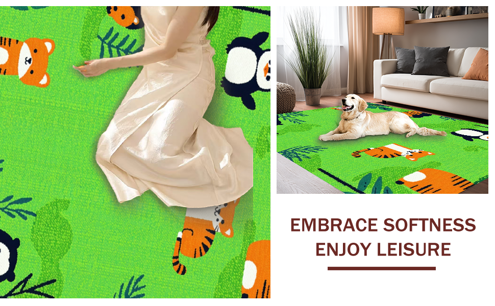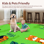 Ultra Soft Area Rug, Non Slip, Stain Resistant, Washable Area Rugs for Living Room, Bedroom, Animated Safari-Inspired Decor(Green) Overview: