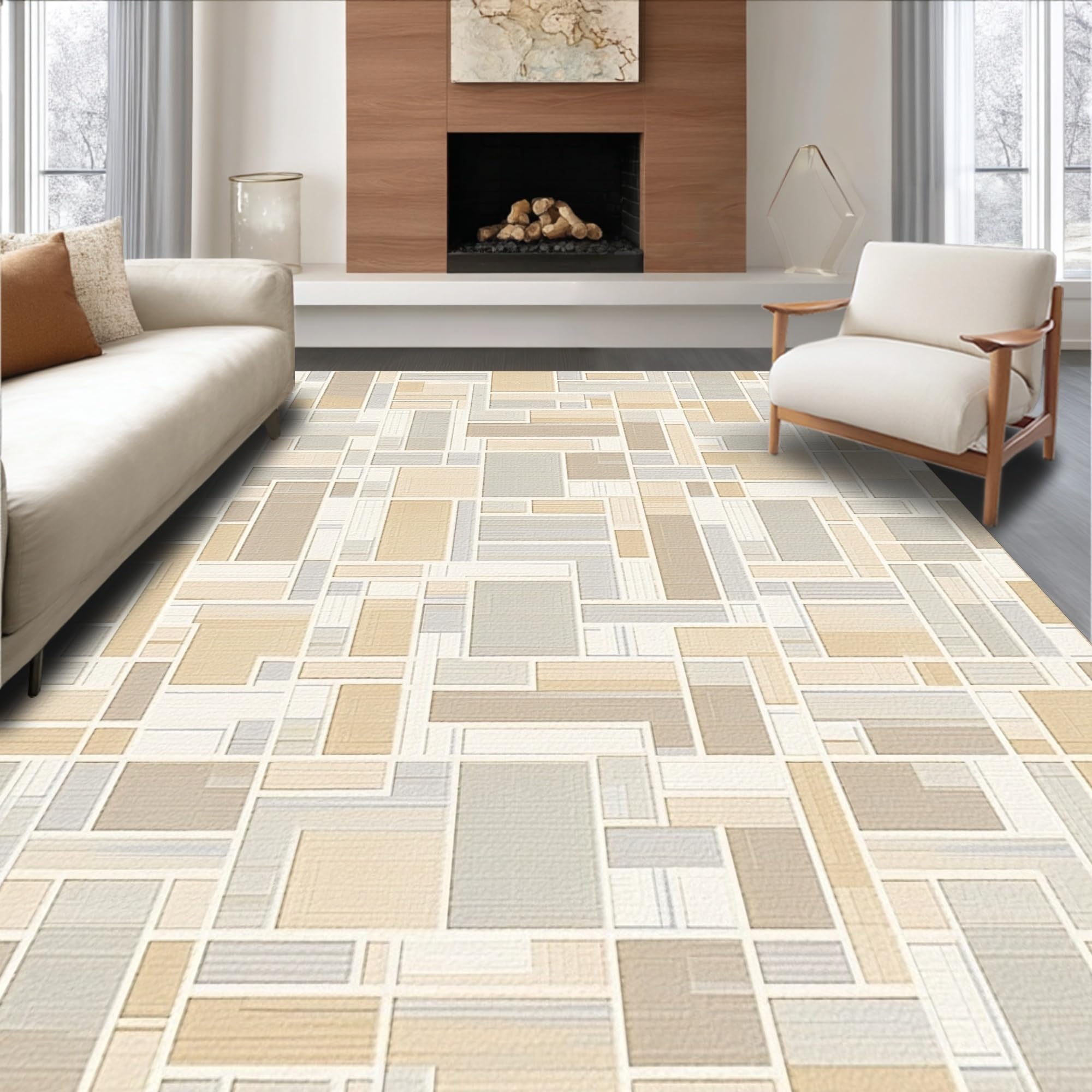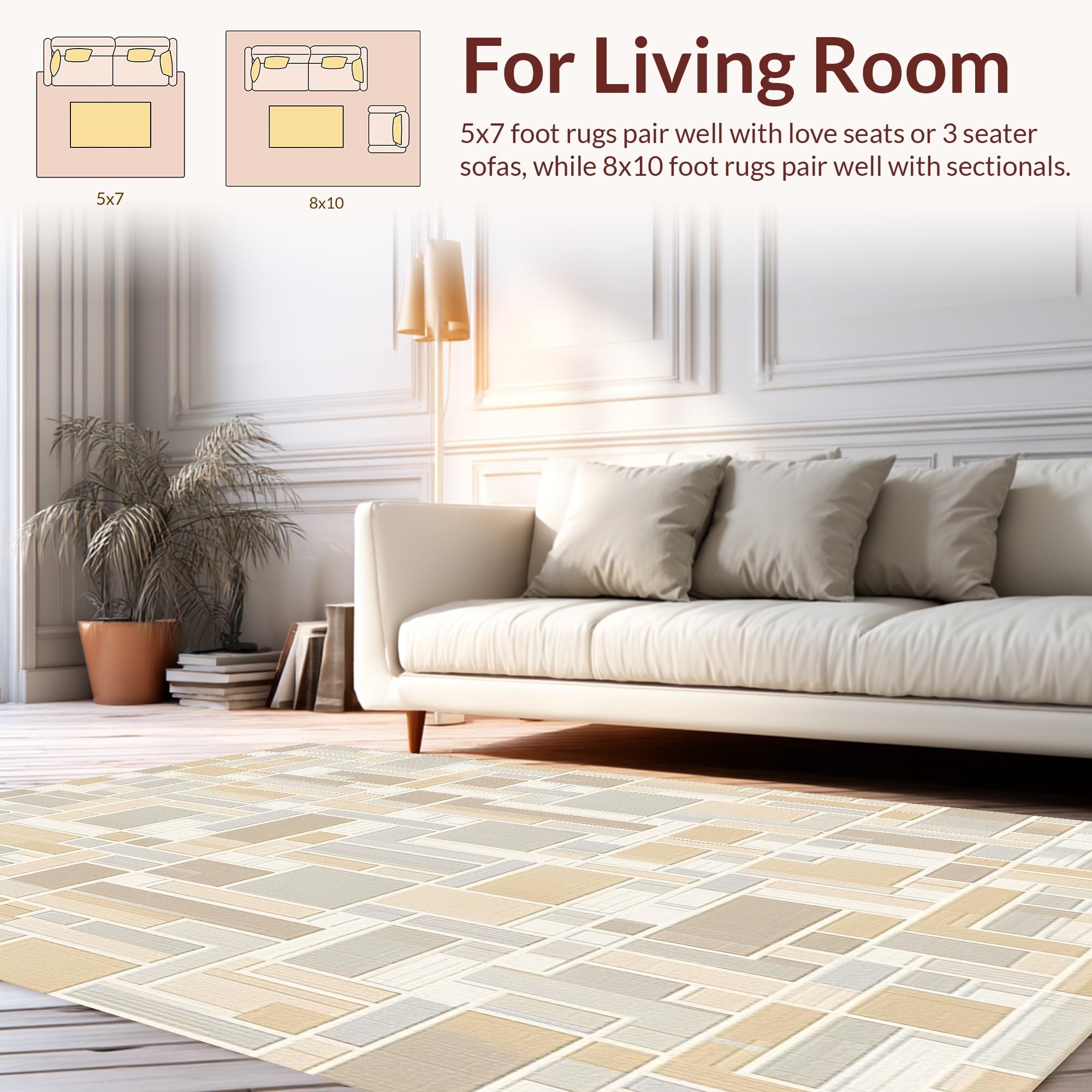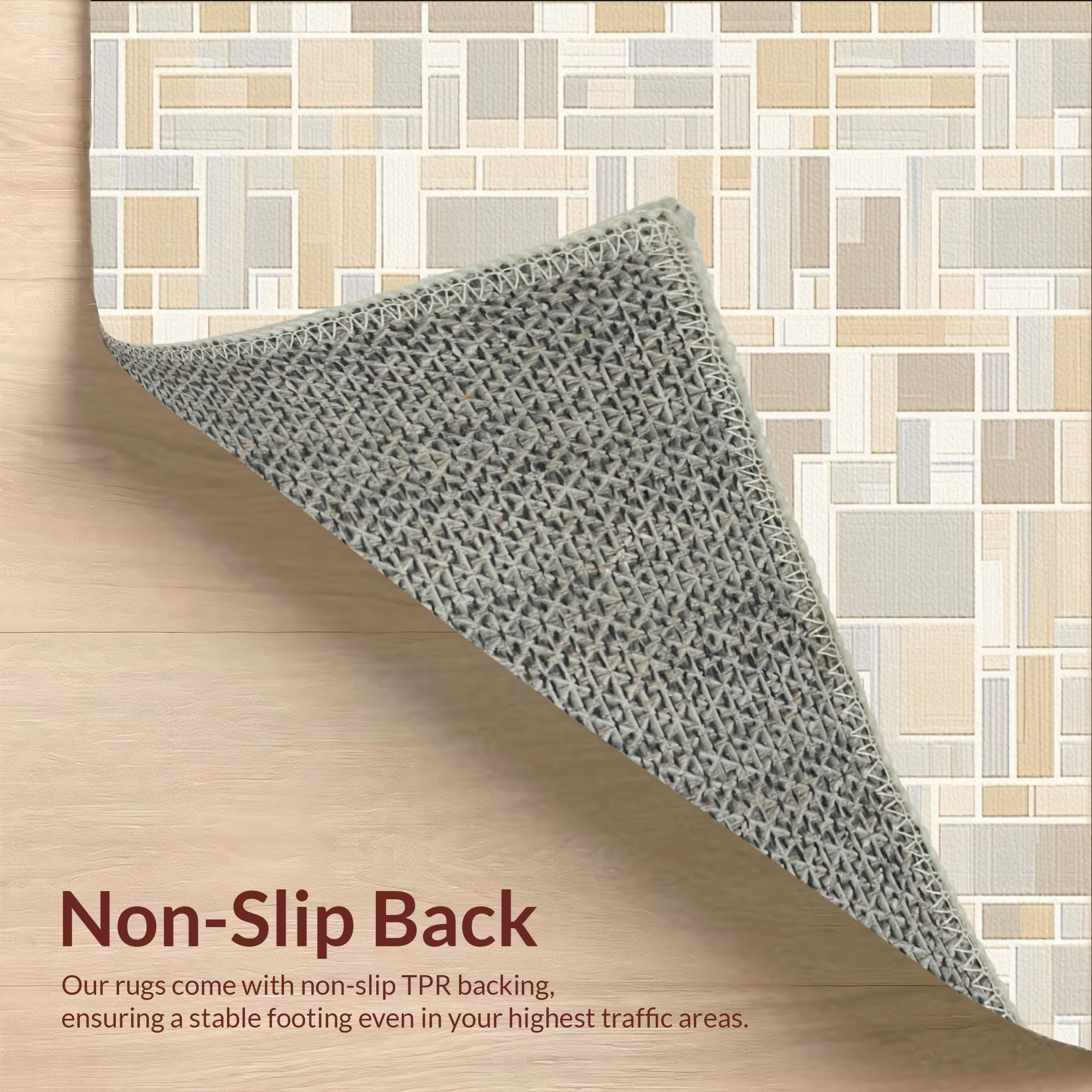 Ultra Soft Area Rug, Non Slip, Stain Resistant, Washable Area Rugs for Living Room, Bedroom, Anti Slip Runner Pad with Raised Grid Surface for Hold(Beige) Overview:
