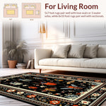 Ultra Soft Area Rug, Non Slip, Stain Resistant, Washable Area Rugs for Living Room, Bedroom, Antique Inspired Beetle and Bug with Interlaced Floral Elements(Black) Overview: