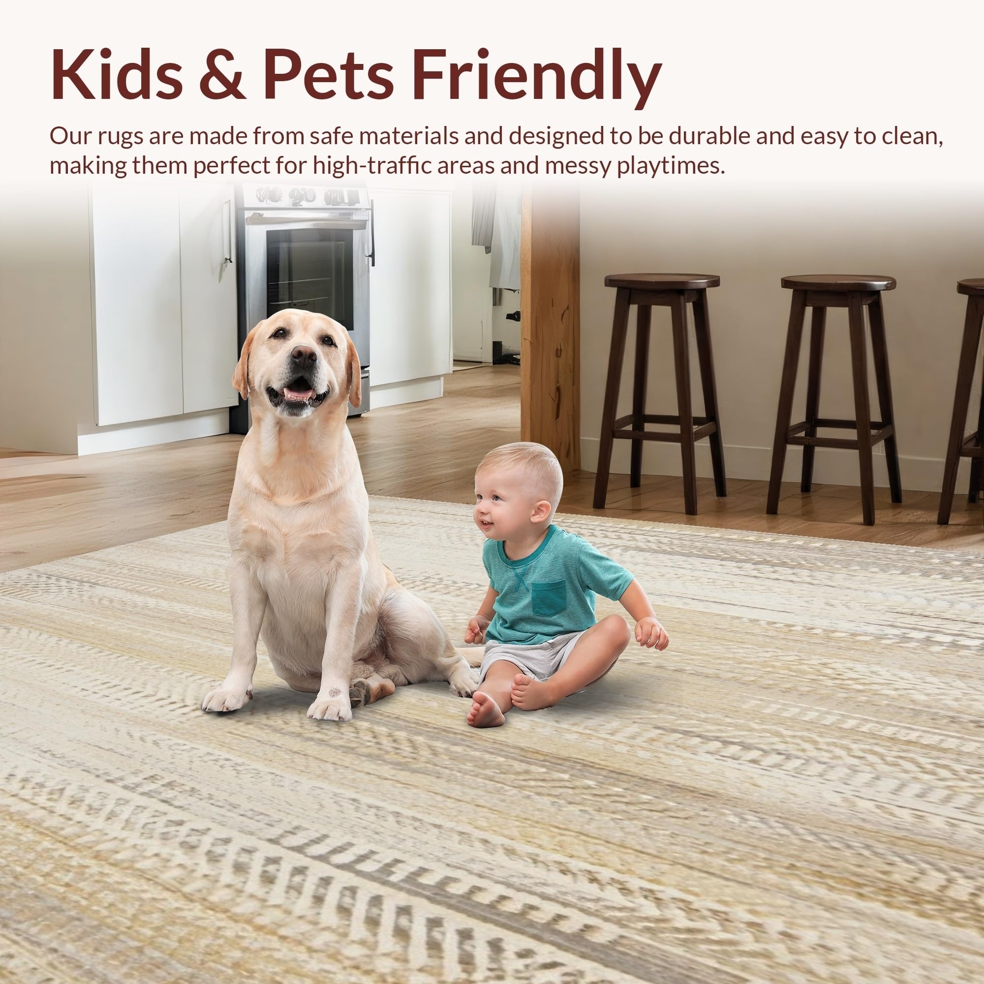 Ultra Soft Area Rug, Non Slip, Stain Resistant, Washable Area Rugs for Living Room, Bedroom, Antique Revival Beige & Sand Area Distressed Weave Artistic Design(Beige) Overview: