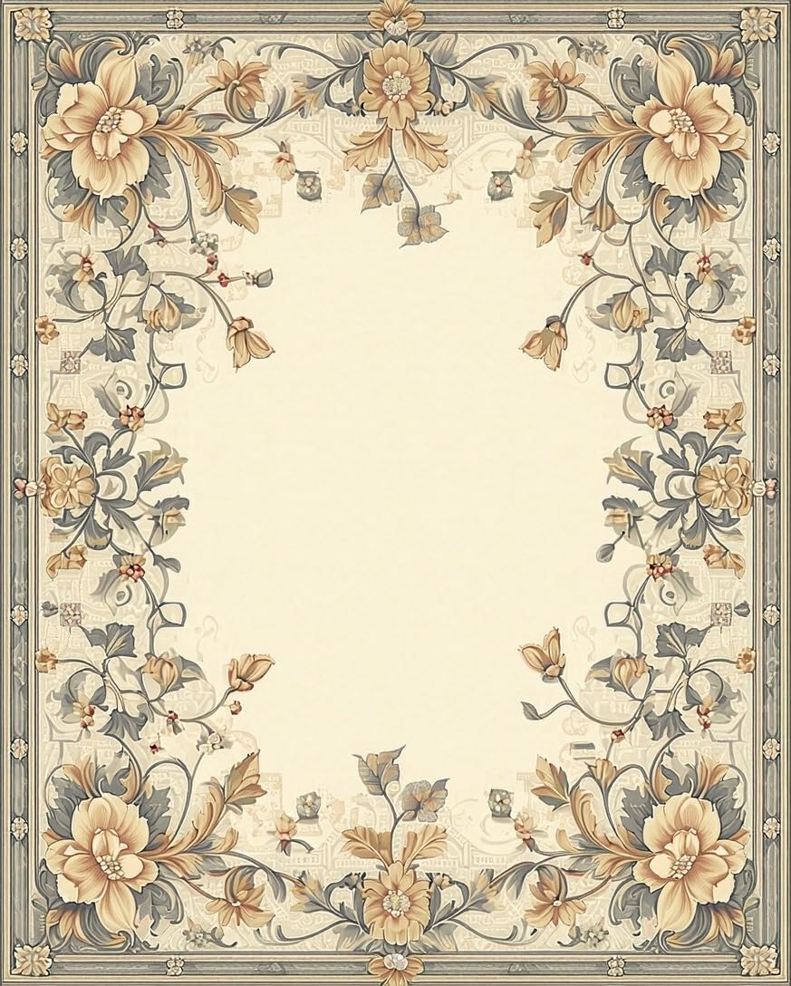 Antique Scroll Area Showcasing Floral Arabesque and Stylized Border Details(Beige)
