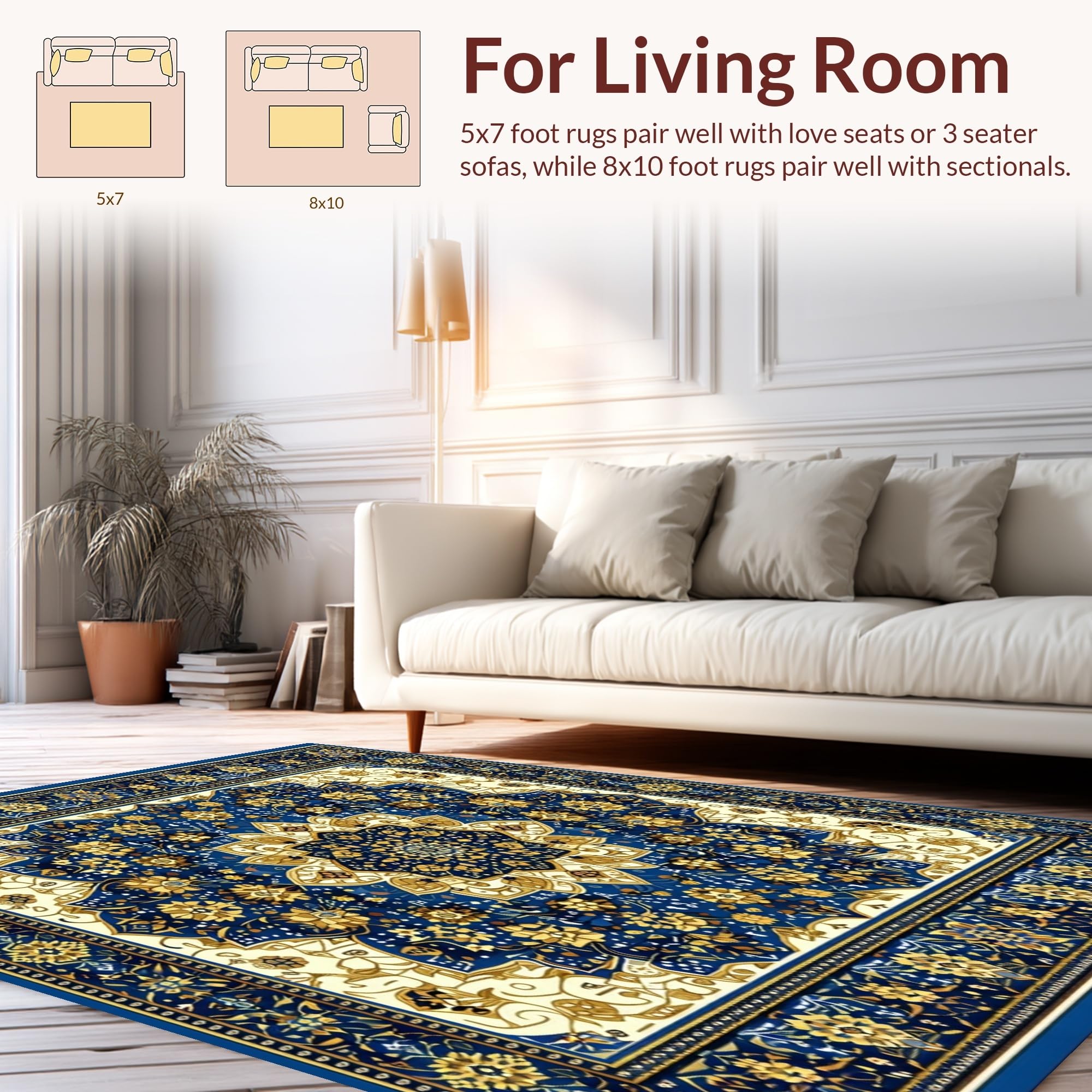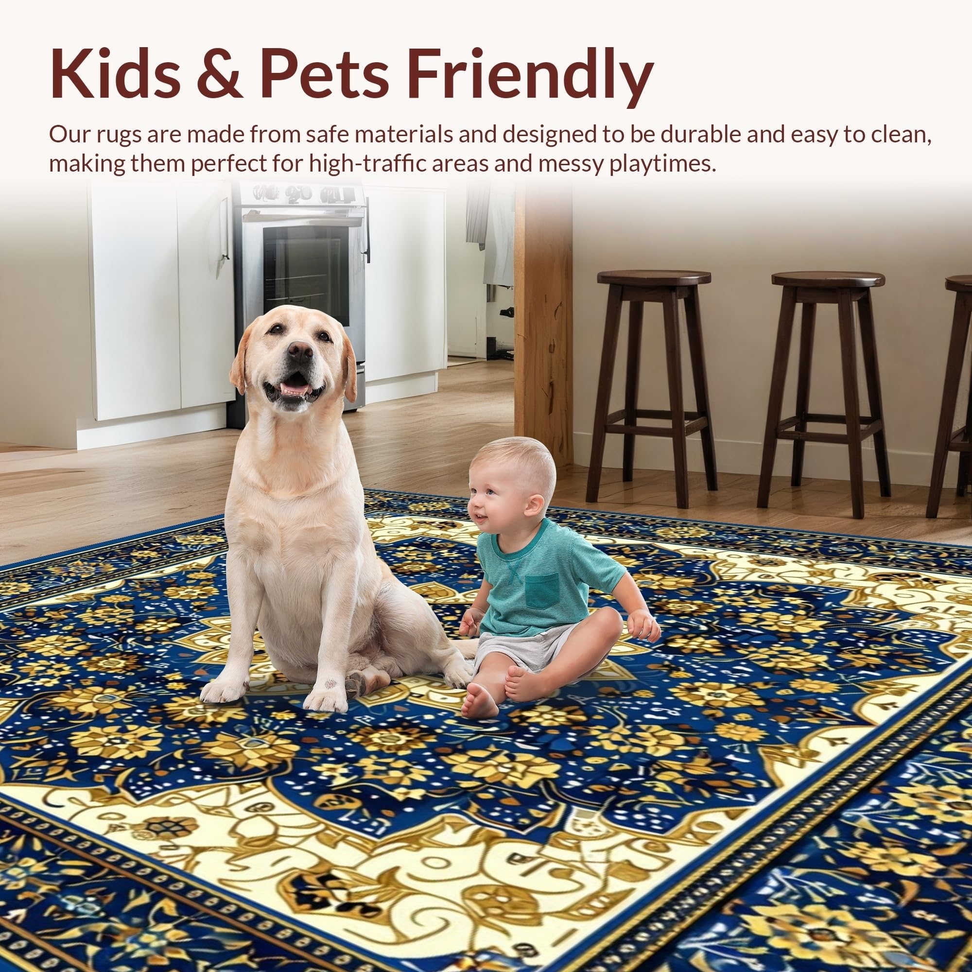 Ultra Soft Area Rug, Non Slip, Stain Resistant, Washable Area Rugs for Living Room, Bedroom, Antique(Blue) Overview: