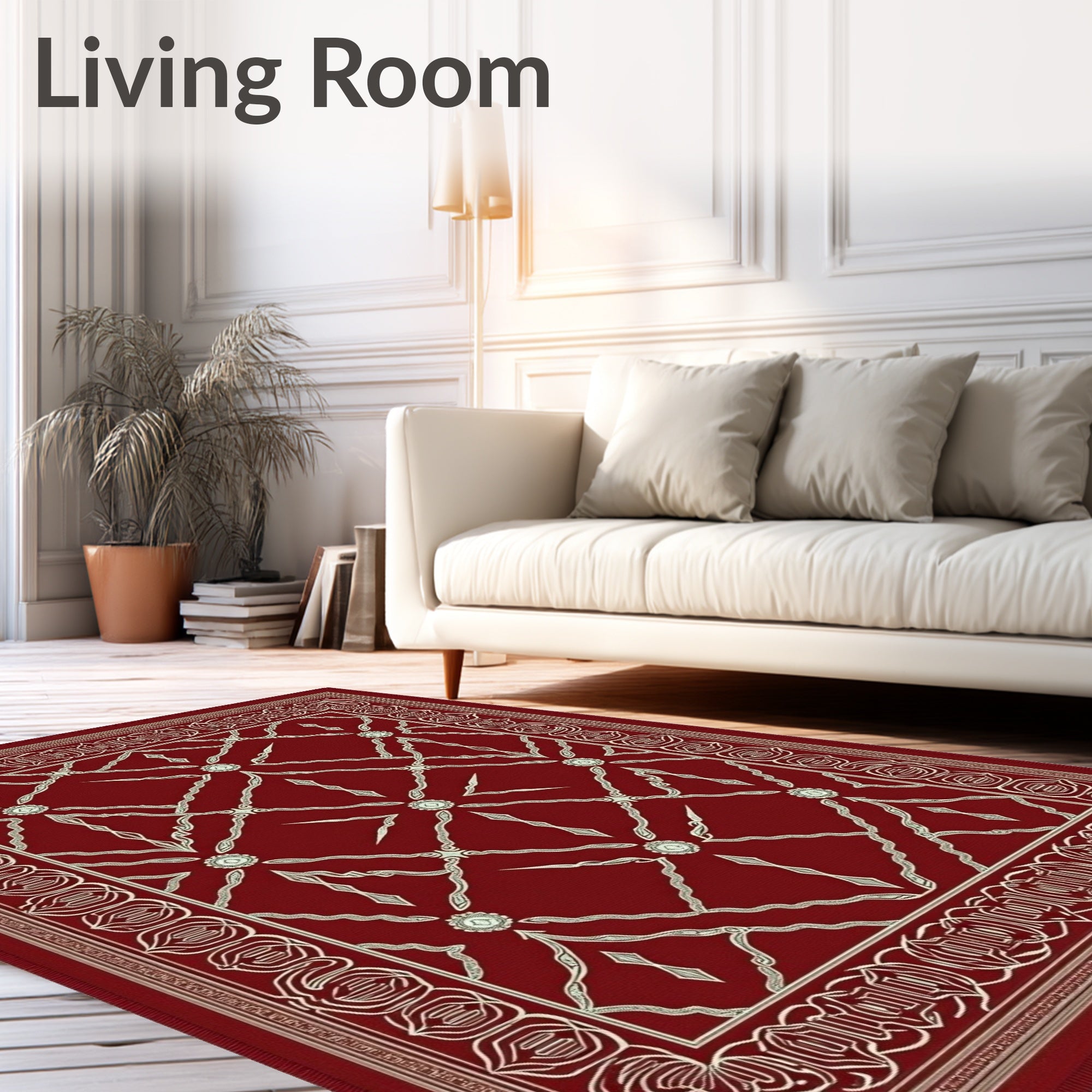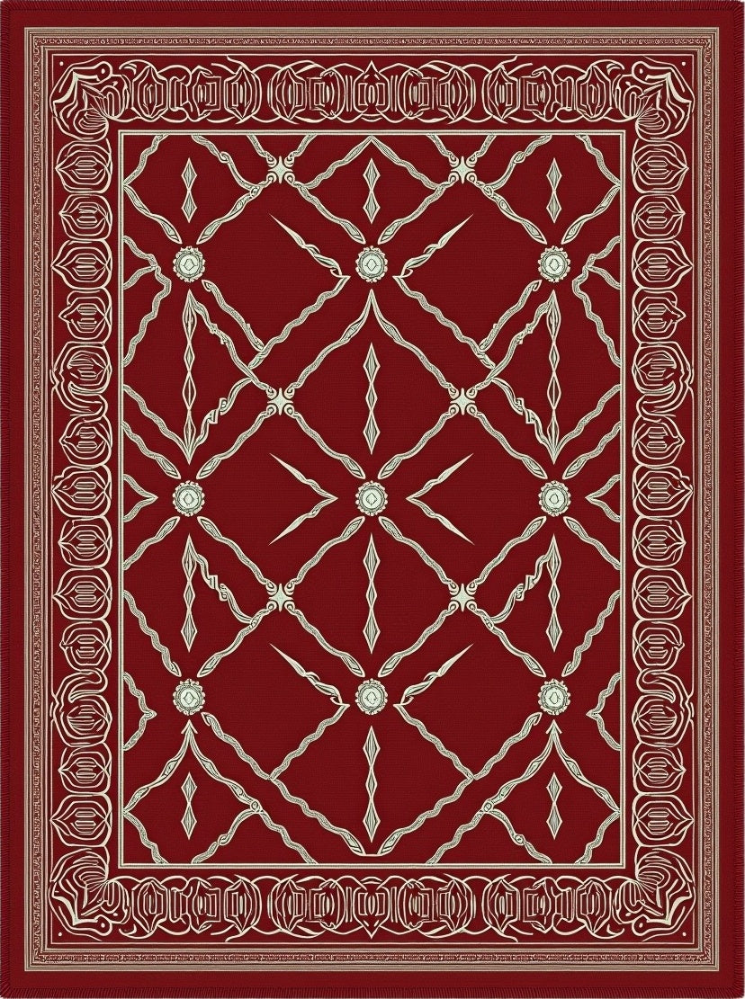 Ultra Soft Area Rug, Non Slip, Stain Resistant, Washable Area Rugs for Living Room, Bedroom, Antiqued Lattice Filigree Jewel Embellished Craftwork(Red) Overview: