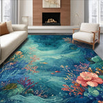 Ultra Soft Area Rug, Non Slip, Stain Resistant, Washable Area Rugs for Living Room, Bedroom, Aqua Garden Rug Undersea Floral Carpet(Blue) Overview: