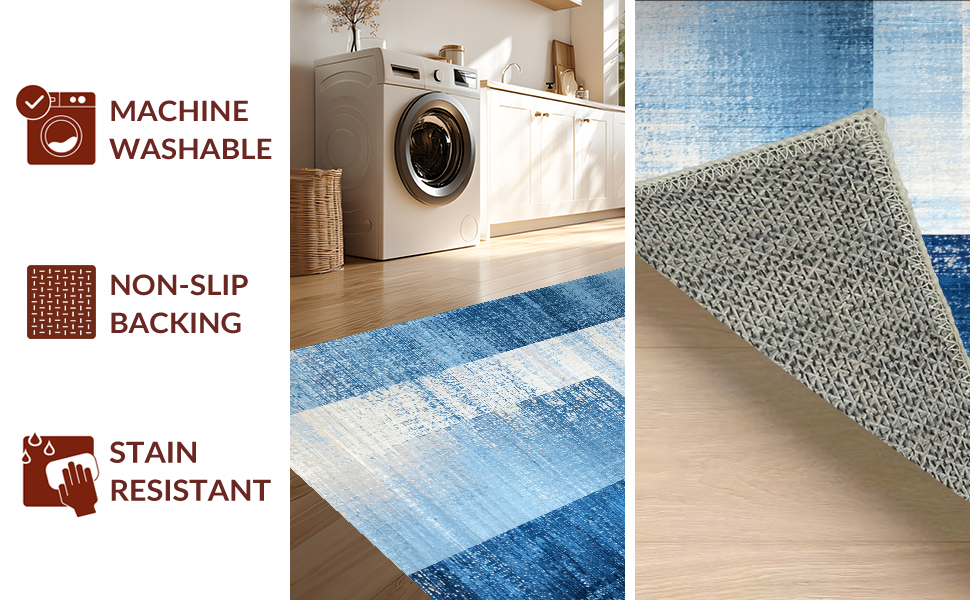 Ultra Soft Area Rug, Non Slip, Stain Resistant, Washable Area Rugs for Living Room, Bedroom, Aquatic Ombre, Gradient Wash, Modern Art(Blue) Overview: