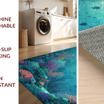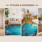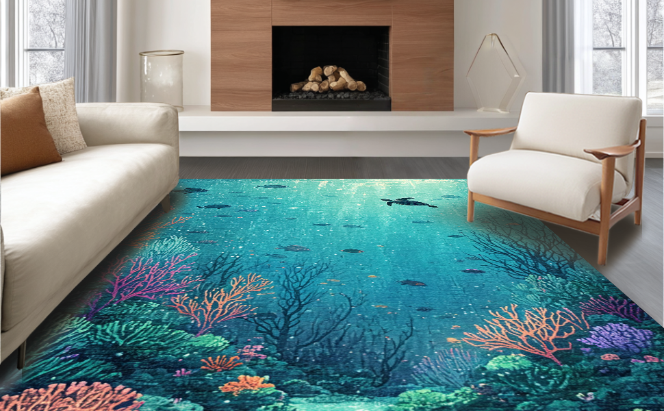 Ultra Soft Area Rug, Non Slip, Stain Resistant, Washable Area Rugs for Living Room, Bedroom, Aquatic Wonderland Rug With Coral Garden Turtle Sanctuary Pattern(Blue) Overview: