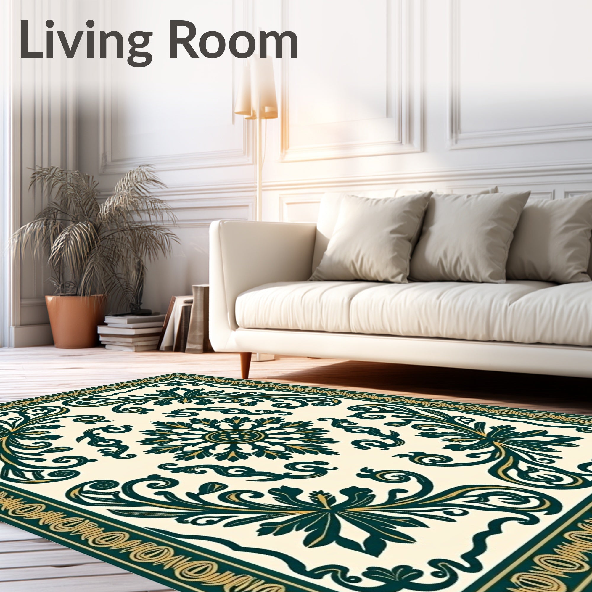 Ultra Soft Area Rug, Non Slip, Stain Resistant, Washable Area Rugs for Living Room, Bedroom, Arabesque Damask Flourish Artisan Collection(Green) Overview: