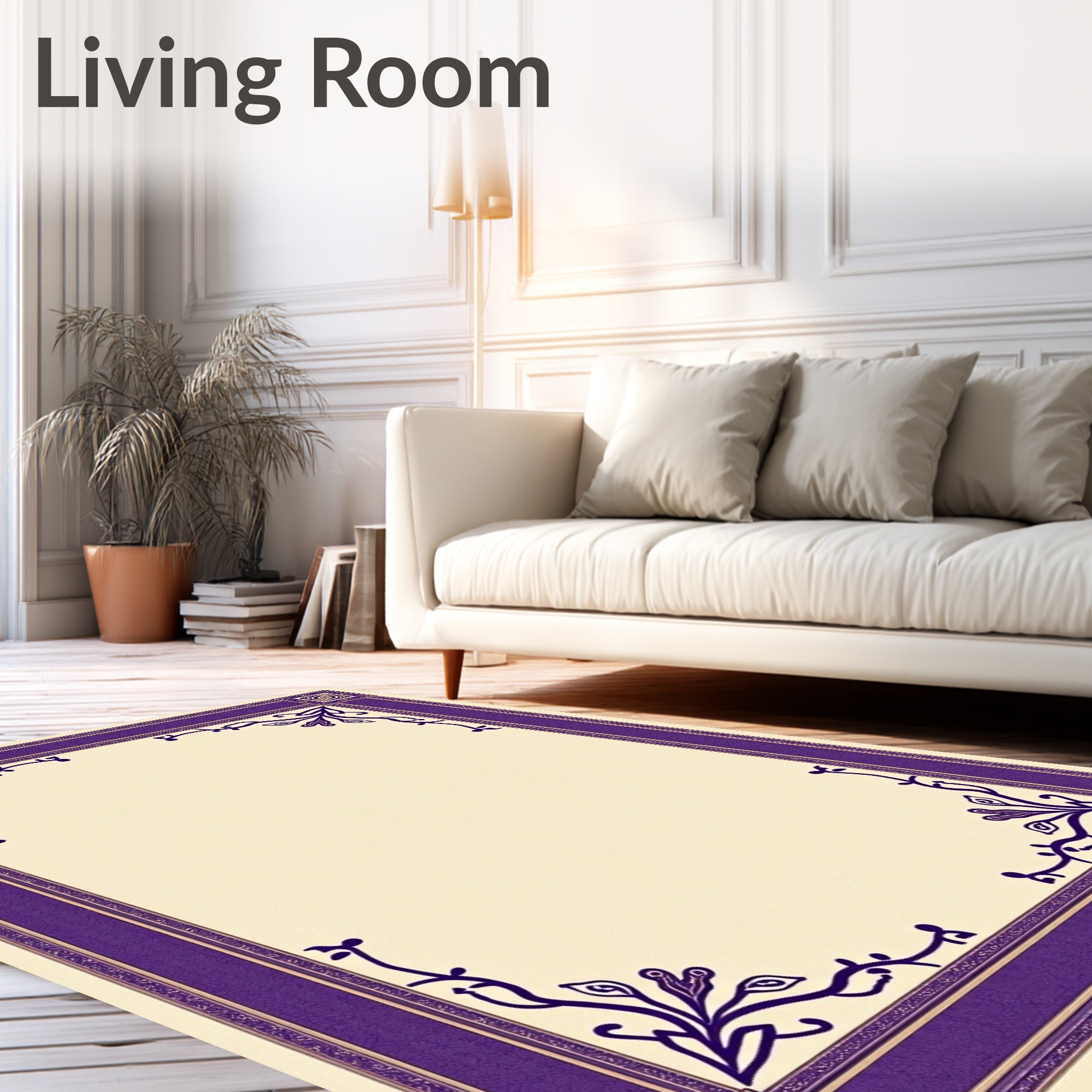 Ultra Soft Area Rug, Non Slip, Stain Resistant, Washable Area Rugs for Living Room, Bedroom, Arabesque Scroll with Flowing Tendril and Decorative Borders(Ivory) Overview: