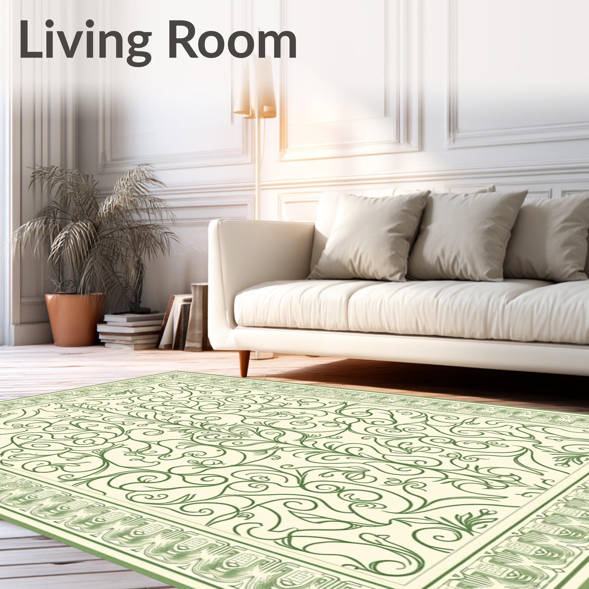 Ultra Soft Area Rug, Non Slip, Stain Resistant, Washable Area Rugs for Living Room, Bedroom, Arabesque Scrollwork with Interwoven Vine(Ivory) Overview: