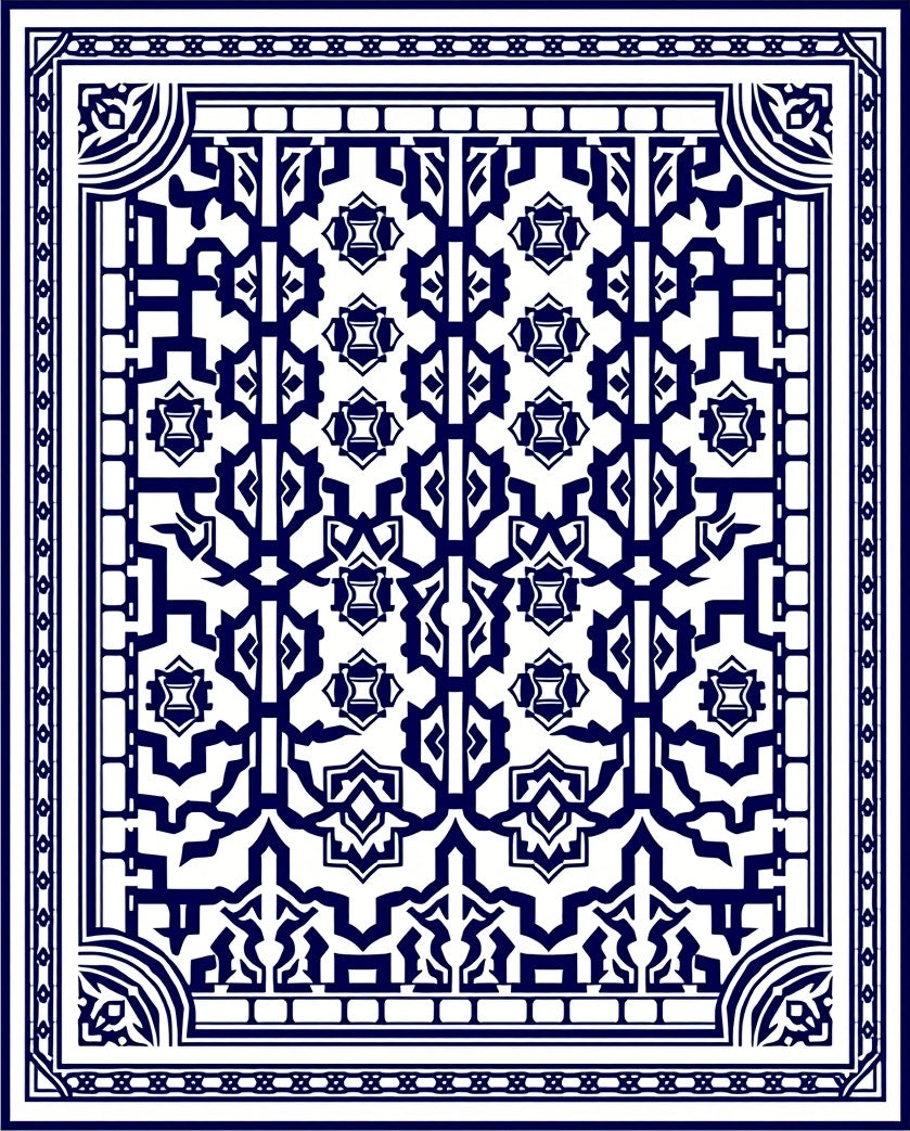 Arabesque Tile Mosaic Inspired Floor Covering Design(Blue)