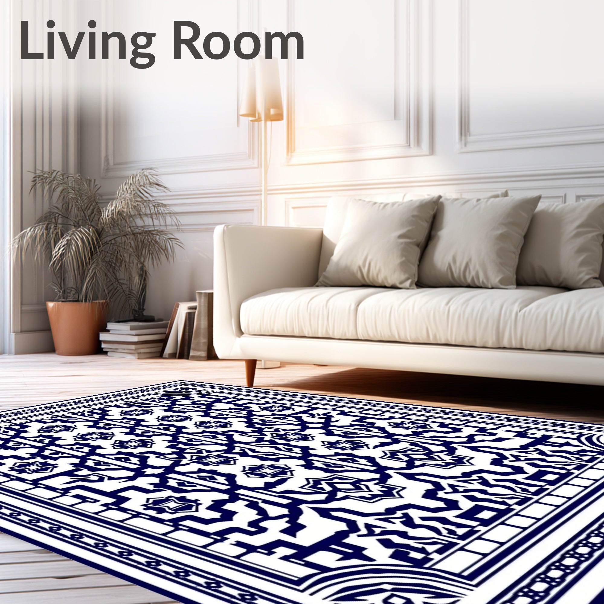 Ultra Soft Area Rug, Non Slip, Stain Resistant, Washable Area Rugs for Living Room, Bedroom, Arabesque Tile Mosaic Inspired Floor Covering Design(Blue) Overview: