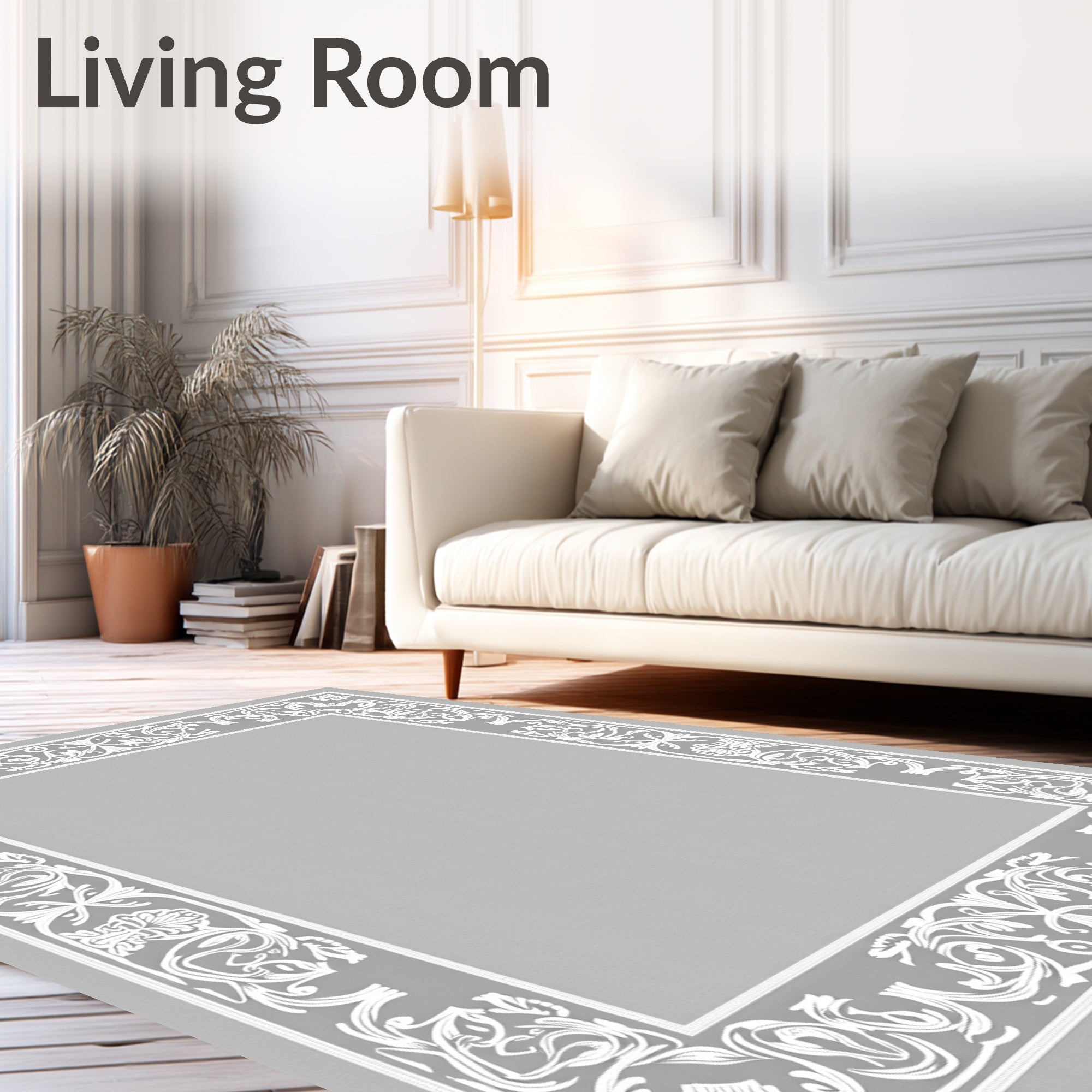 Flatwoven High Traffic Area Rug, Vine with Delicate Floral Accents, Non Slip, Stain Resistant, Washable Area Rugs for Living Room, Bedroom (Gray) Overview: