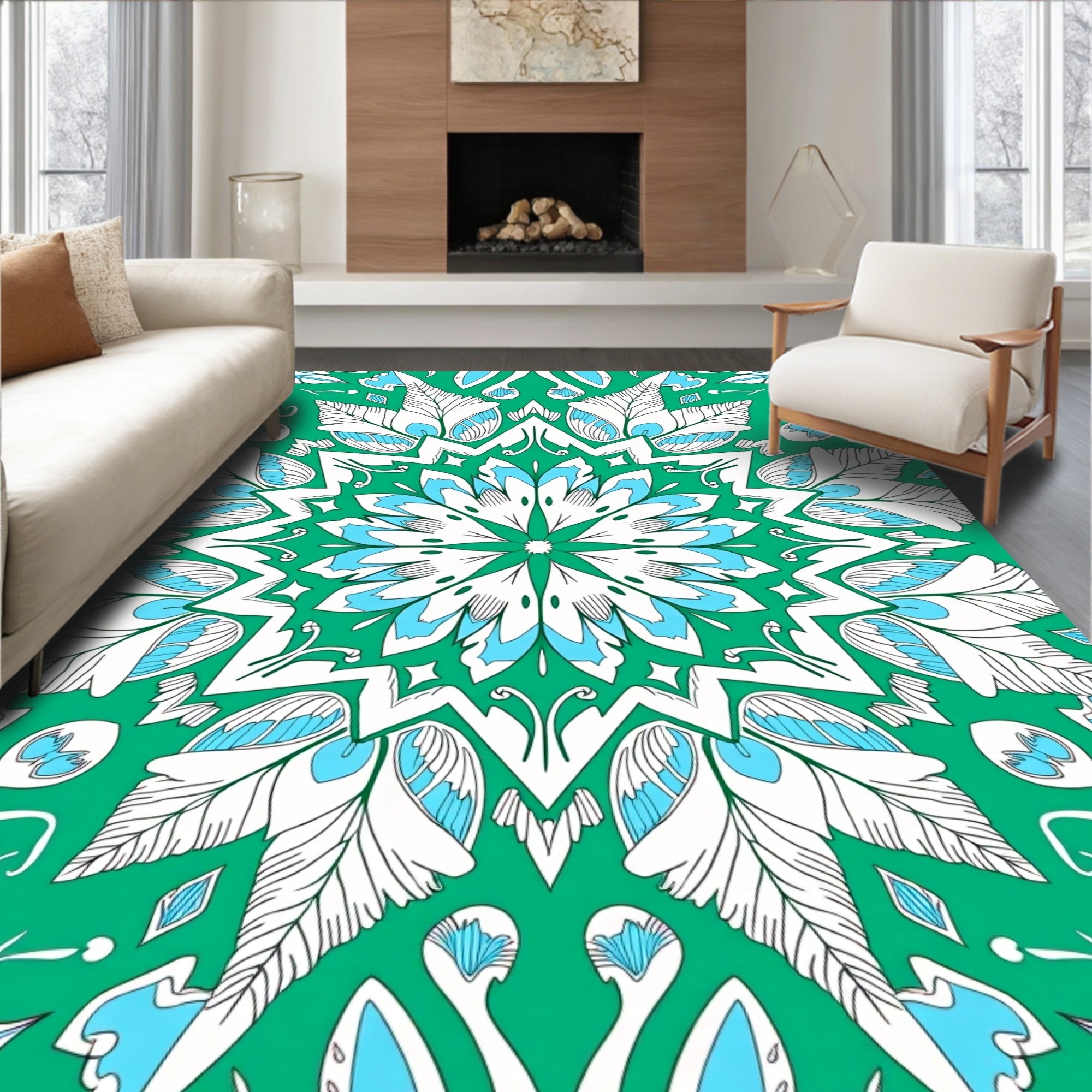 Ultra Soft Area Rug, Non Slip, Stain Resistant, Washable Area Rugs for Living Room, Bedroom, Arctic Floral Floor(Green) Overview: