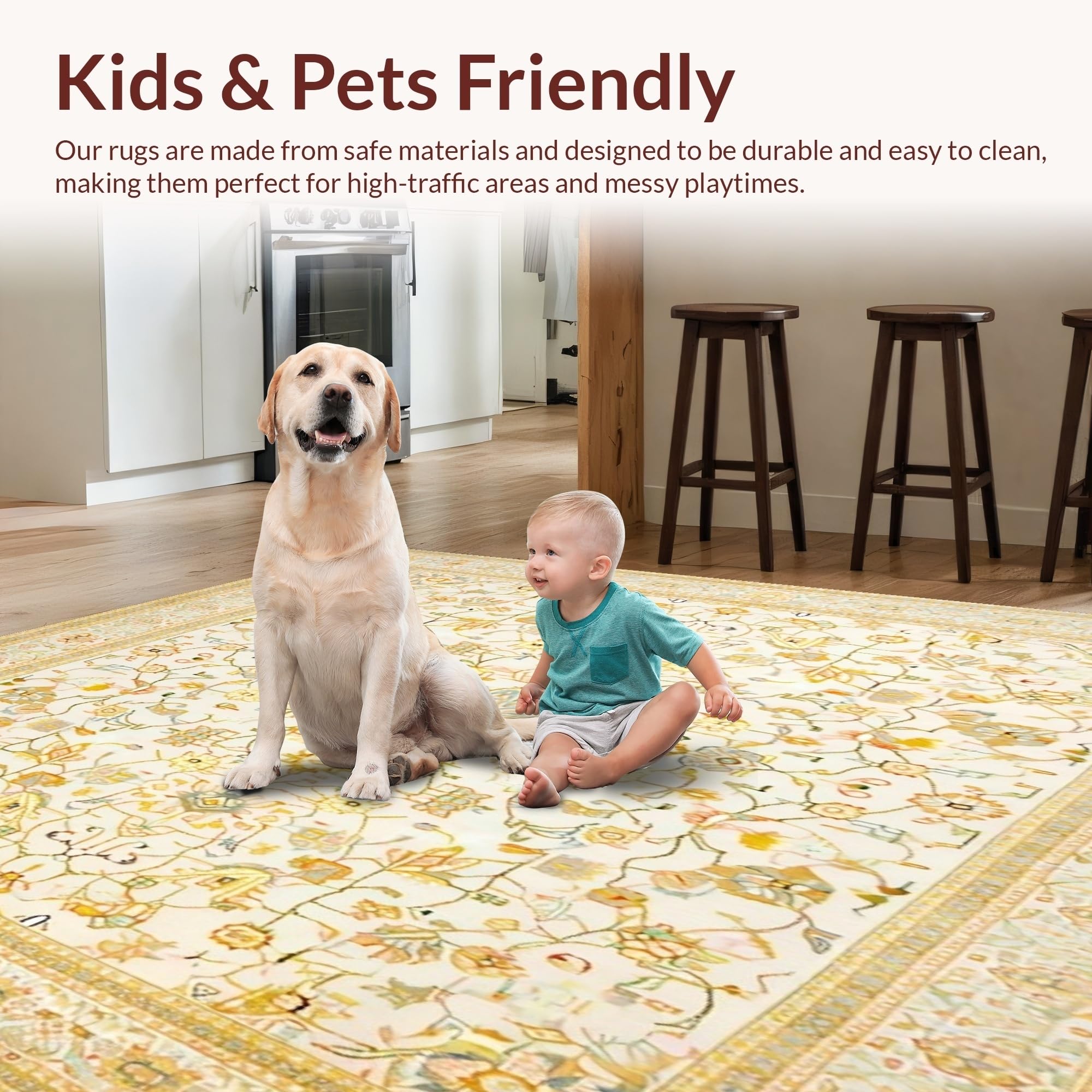 Ultra Soft Area Rug, Non Slip, Stain Resistant, Washable Area Rugs for Living Room, Bedroom, Arrel Speckled Area Beige Oushak(Ivory) Overview: